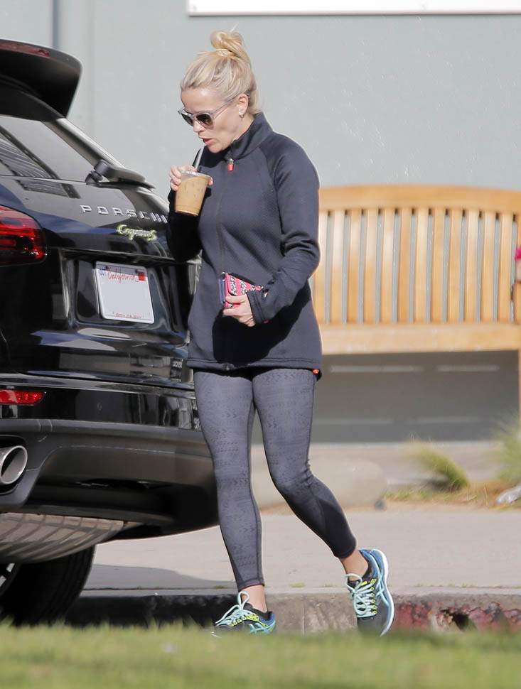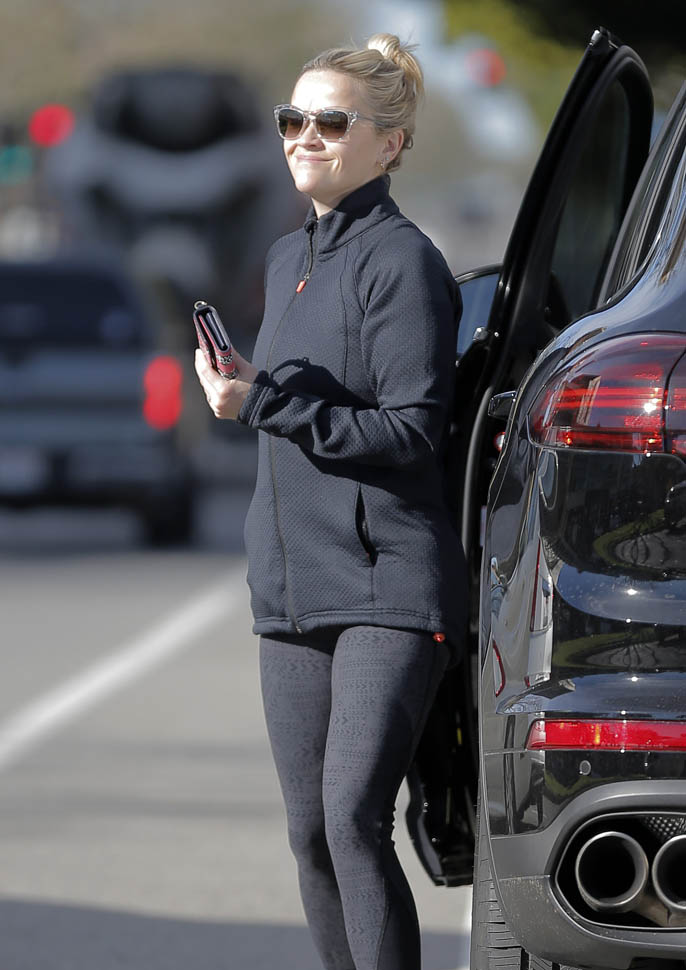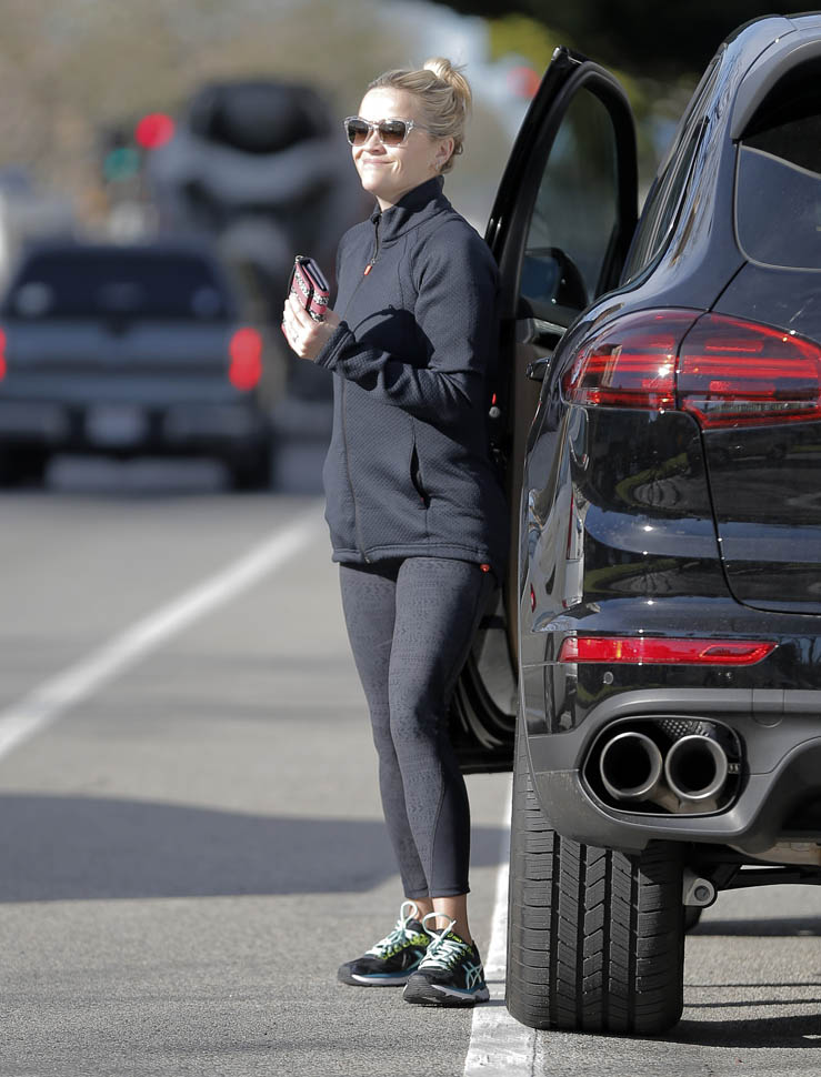 Attached - more shots of Reese in Brentwood today before heading to the gym.