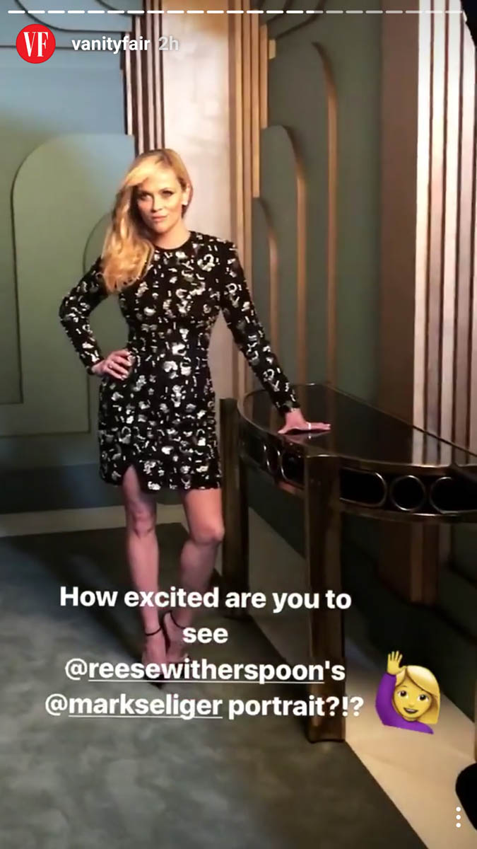 She appears to know that, too, and that she’s got some great work (on paper) in the can. From the looks of it, nothing was keeping Reese from that Vanity Fair party, or from schmoozing with her peers and fellow power players. Her posing in the Vanity Fair portrait studio was all about power, too.