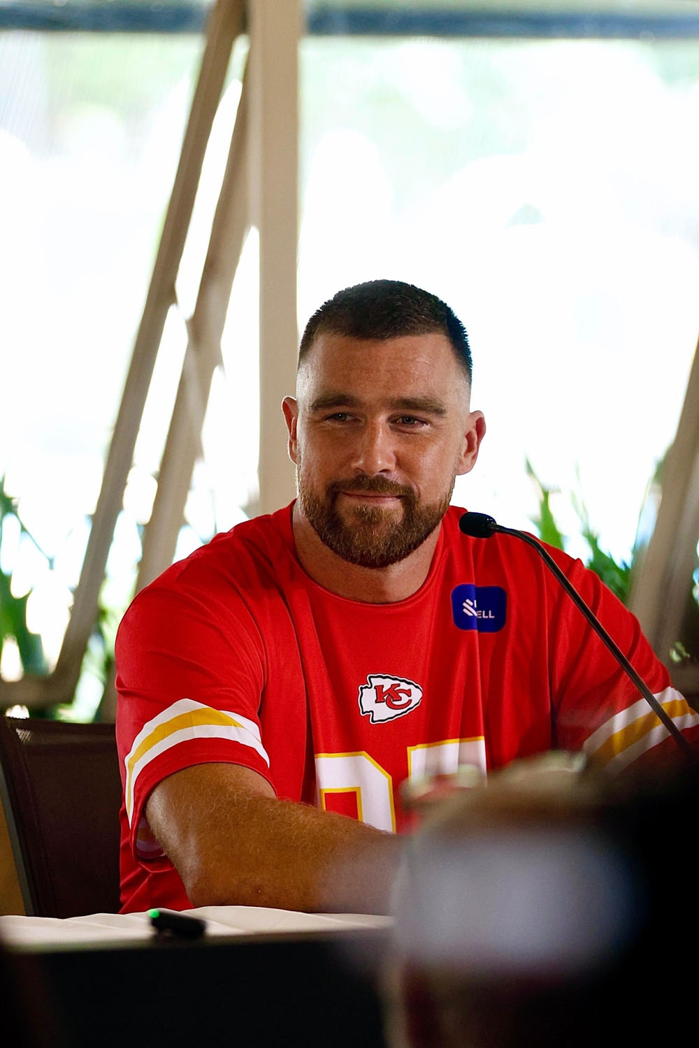 Please don’t take this as disrespect to Travis. I don’t know him, obviously, but I can’t imagine that he would take offence to it because it’s not like he doesn’t know it’s true. That’s part of the appeal since he and Taylor became TNT: that he understands who the main character is, that he’s not out here getting his feelings hurt about it, that he is secure enough in his masculinity to not just accept but also embrace the fact that because she is who she is, people care a lot more about who he is. He said as much during the press conference today.