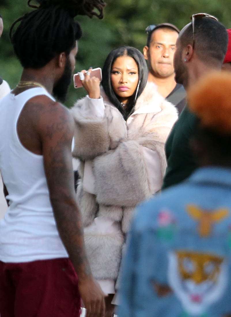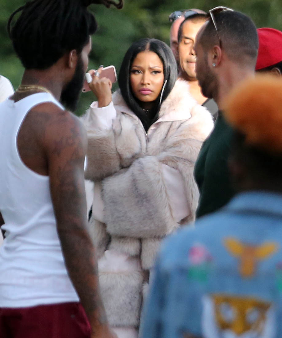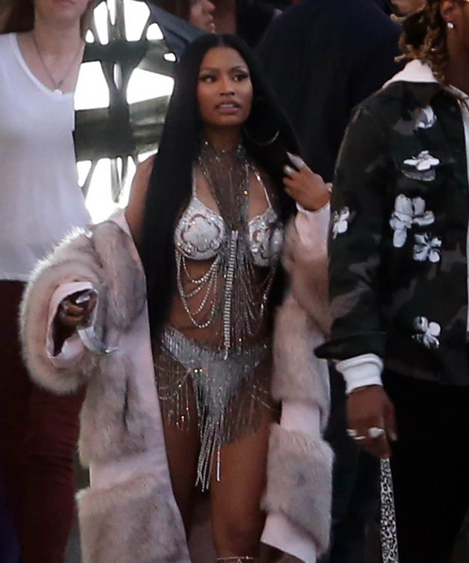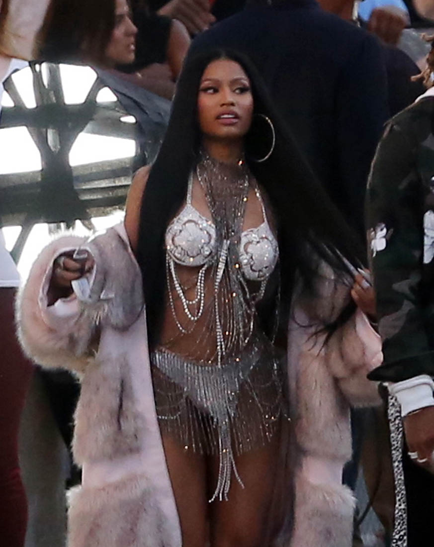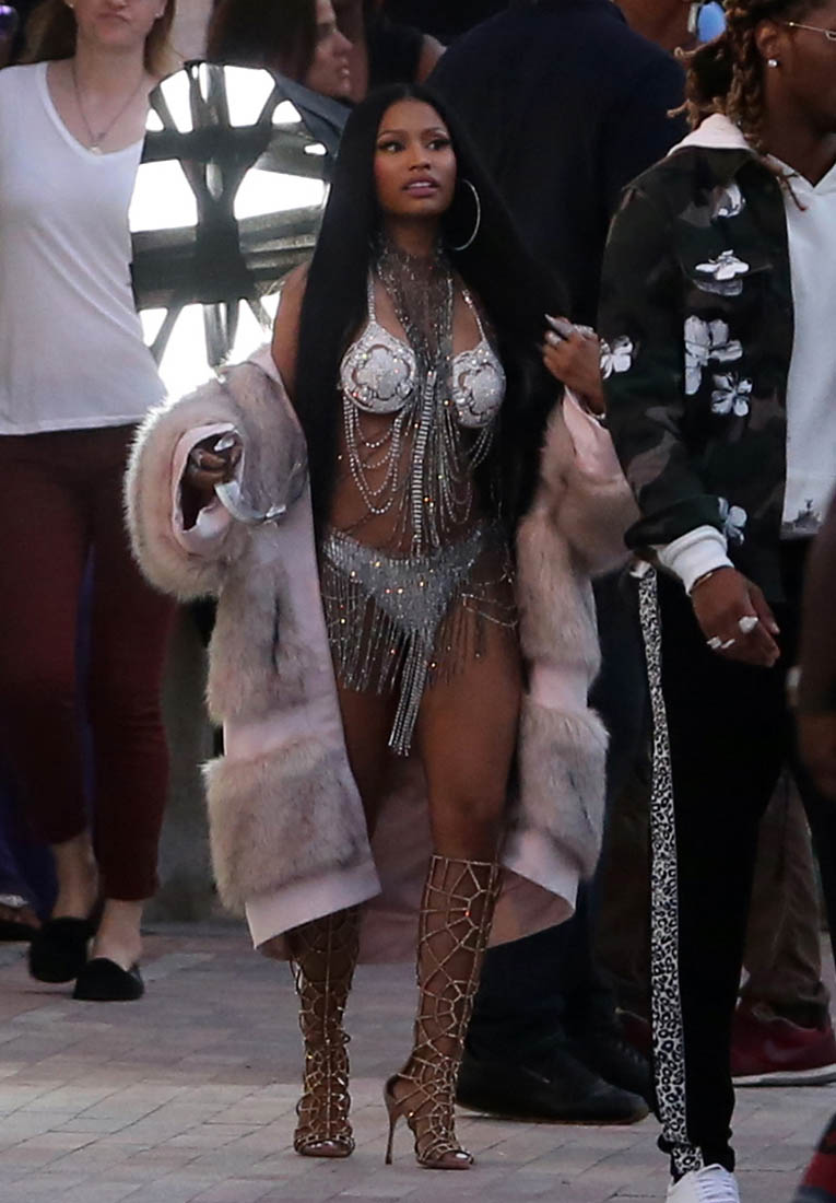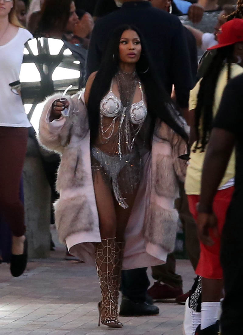 Here's Nicki on the set of a new music video in Miami Beach on Monday.