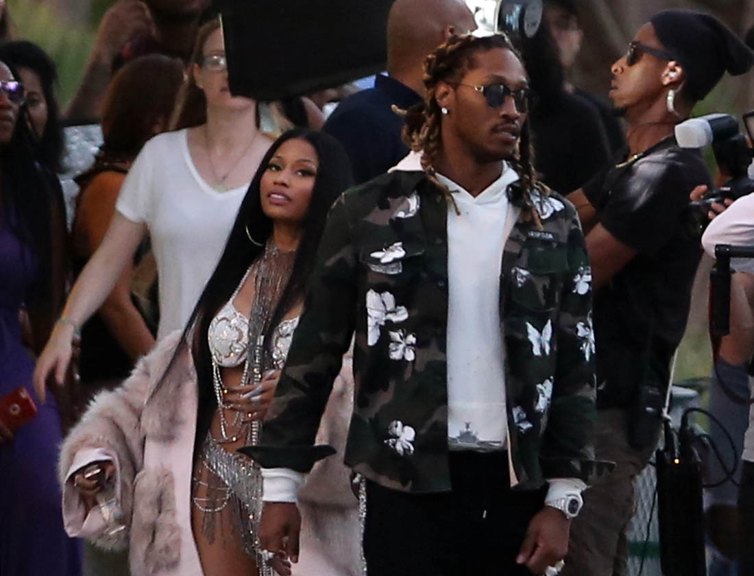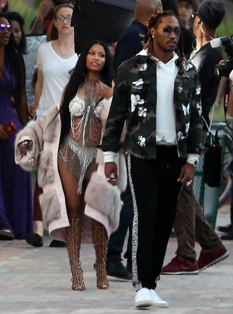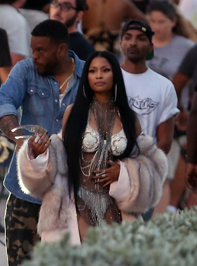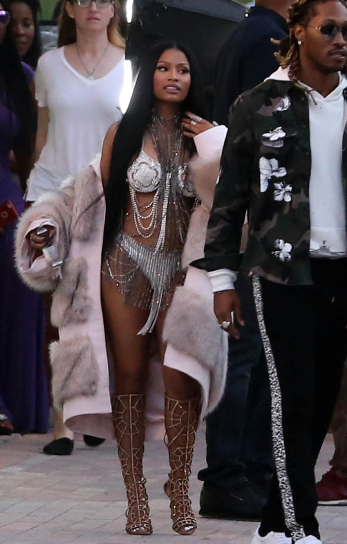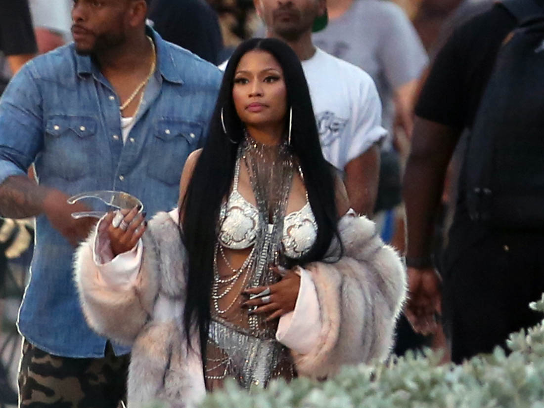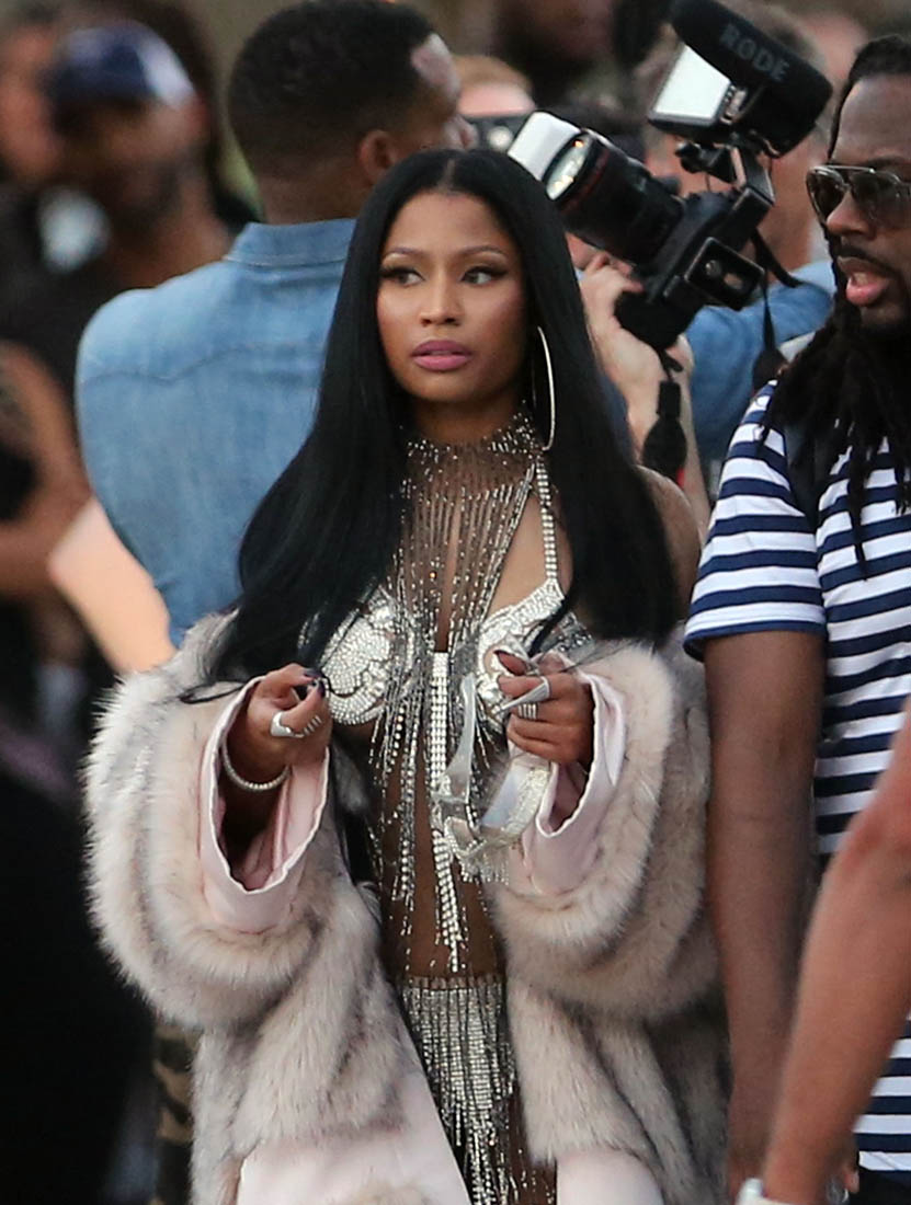 Here's Nicki on the set of a new music video in Miami Beach on Monday.