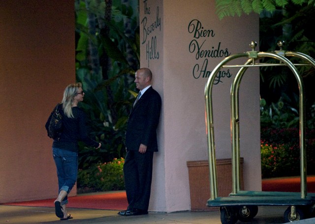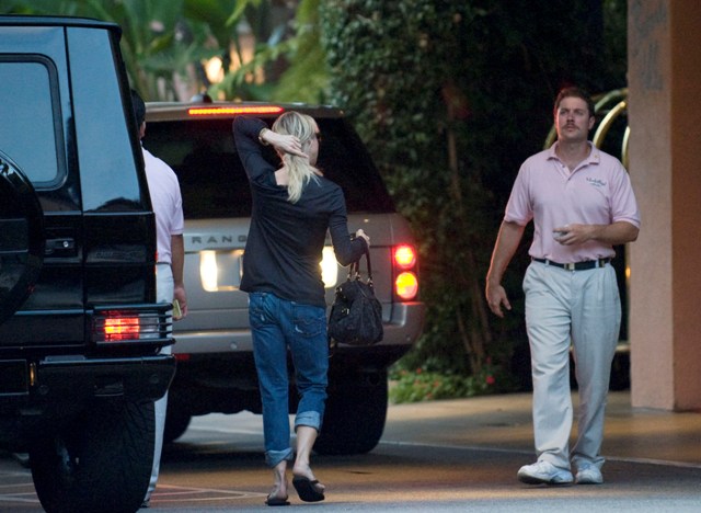 Renee Zellweger and Bradley Cooper in LA on Saturday – he picked her up at her hotel, as you can see she’s carrying what looks like an overnight laundry bag (?), and they drove over to another hotel, the swanky pink Beverly Hills Hotel (if you bring your dog along, they provide cookies with his/her name on them), for, presumably, a short sexy sleepover. My preference is modern for hotels. Not really down with the old school décor of places like these. But it’s the service that sets them apart. Perfect for a few stolen hours of loving before another work separation. More on that later.