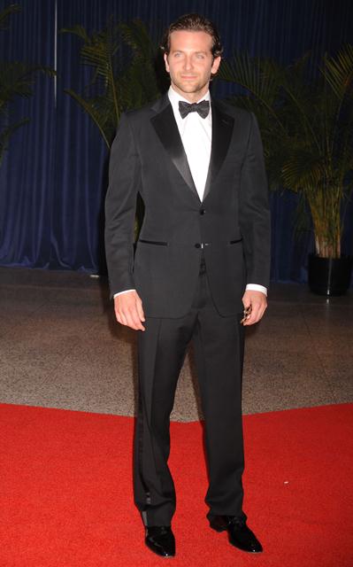 While Renee was working it on the carpet on the West Coast, her boyfriend Bradley Cooper was in a more serious mood in a tux at the White House Correspondents’ Dinner in Washington where he caught up with Darren Star (Kitchen Confidential) and demonstrated that he can carry on a political discussion without passing out. Apparently it’s a rarity among celebrities.
