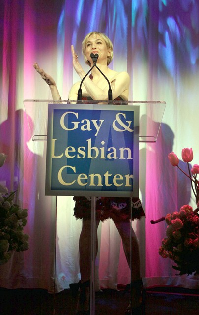 Not sure this is a good thing. Perhaps you have a different opinion. Here’s Renee Zellweger poseharding appropriately on Saturday night at the Los Angeles Gay& Lesbian Centre’s An Evening with Women. Love this dress. Because those little white tiaras (?) look like insects and I am all over printed animal clothing.