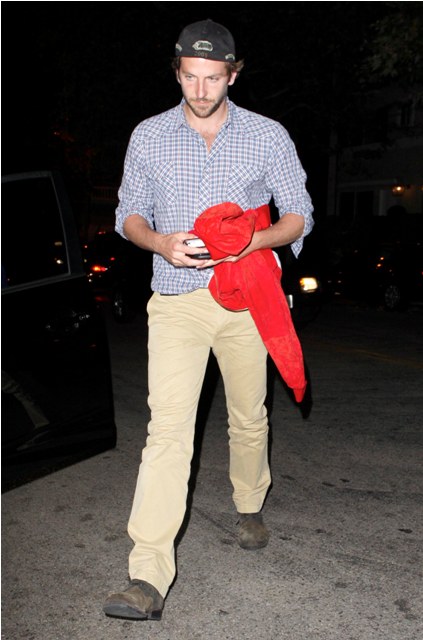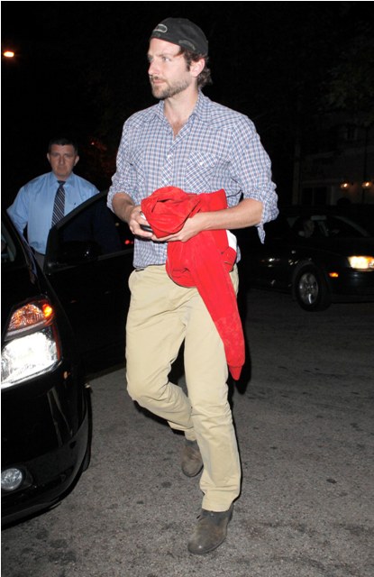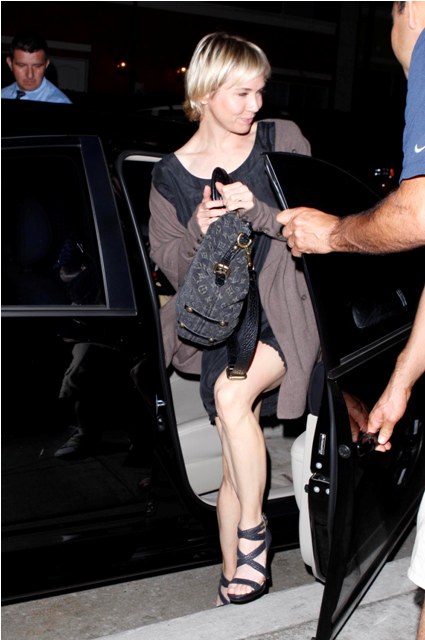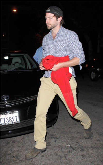 Well, it wasn’t that far away. It was only in Santa Monica, not far away at all. But they spent part of the weekend at a luxury hotel, seen here arriving back after dinner, Coop stonefaced and Renee, however camera shy she may be, unable to conceal her delight. She’s still totally into him. And, by all accounts, he’s very much totally into her. And they’ve been virtually inseparable all summer and, how fortuitous, for work reasons will be together through part of the fall.