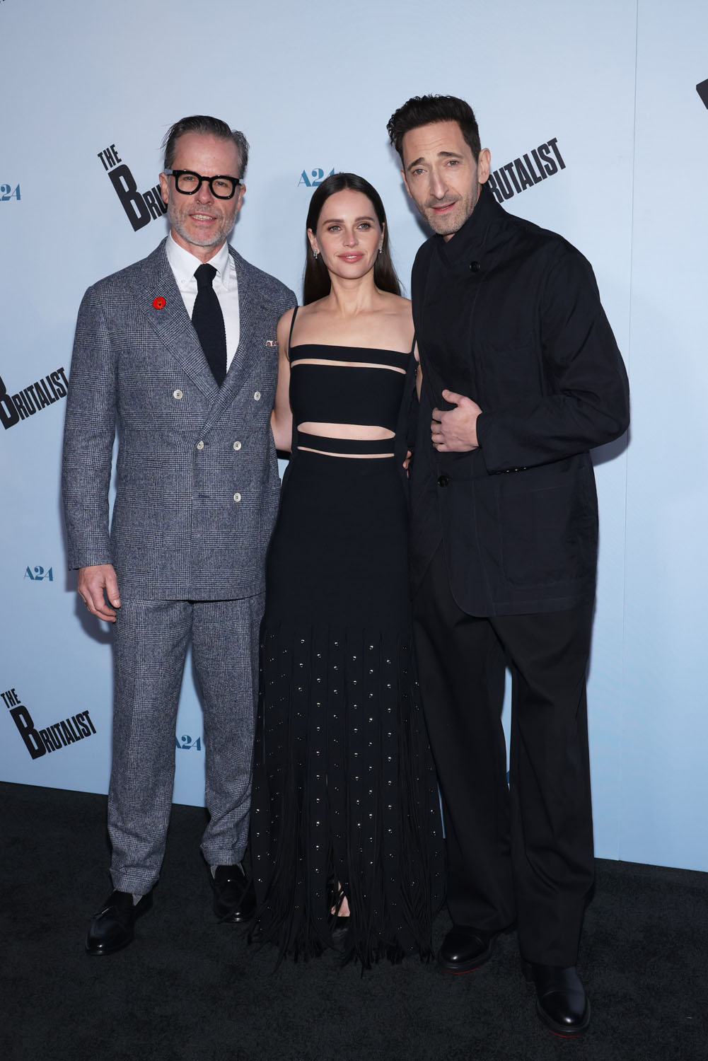 Running an epic 215 minutes (with a 15-minute intermission), The Brutalist begins in 1947 as László arrives in America, where his cousin, Attila (Alessandro Nivola) lets him sleep in a storeroom at his furniture business. Attila builds ugly but functional furniture for the ascendant middle class who can’t quite afford the pricey stuff downtown, and at first, it seems that Attila and László will make a dynamic duo, especially when László designs a modern library for a wealthy industrialist, Harrison Lee Van Buren (Guy Pearce). But Van Buren is infuriated by the work done on his house, and his feckless son, Harry (Joe Alwyn), refuses to pay László for the renovation. Shortly thereafter, László is told to leave Attila’s home and business when Attila’s wife accuses him of unwanted advances—American xenophobia is often represented with a predatory edge throughout the film.