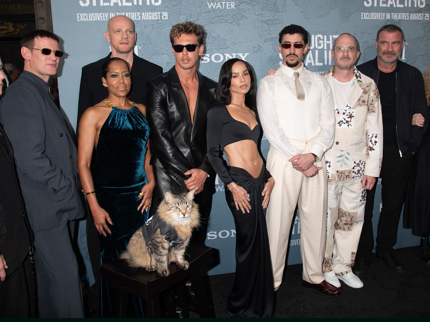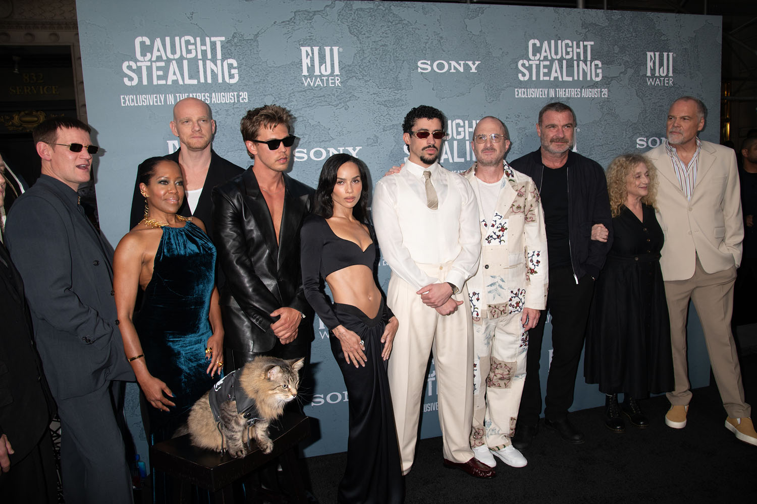 Caught Stealing is full of performances that are best described as “gems”. Besides Butler and Kravitz, the film features Griffin Dunne as Hank’s boss at the bar, an aging hippie who still has Vietnam-era anger and an 80s-era coke habit; Matt Smith as Russ, a loud-mouthed London punk not giving an inch to the encroaching yuppies gentrifying downtown; Regina King as shady cop Roman; Benito Martínez Ocasio as a literally colorful gangster named for his red hair; Carol Kane as a kindly but tough Bubbe; Nikita Kukushkin as Pavel, a memorably psychotic mobster; Liev Schreiber and Vincent D’Onofrio as a pair of Hasidic brothers who also run a mob outfit; and Bud the Cat, played by the wildly charismatic scene-stealer Tonic. (No cat felonies are committed, only cat misdemeanors.)