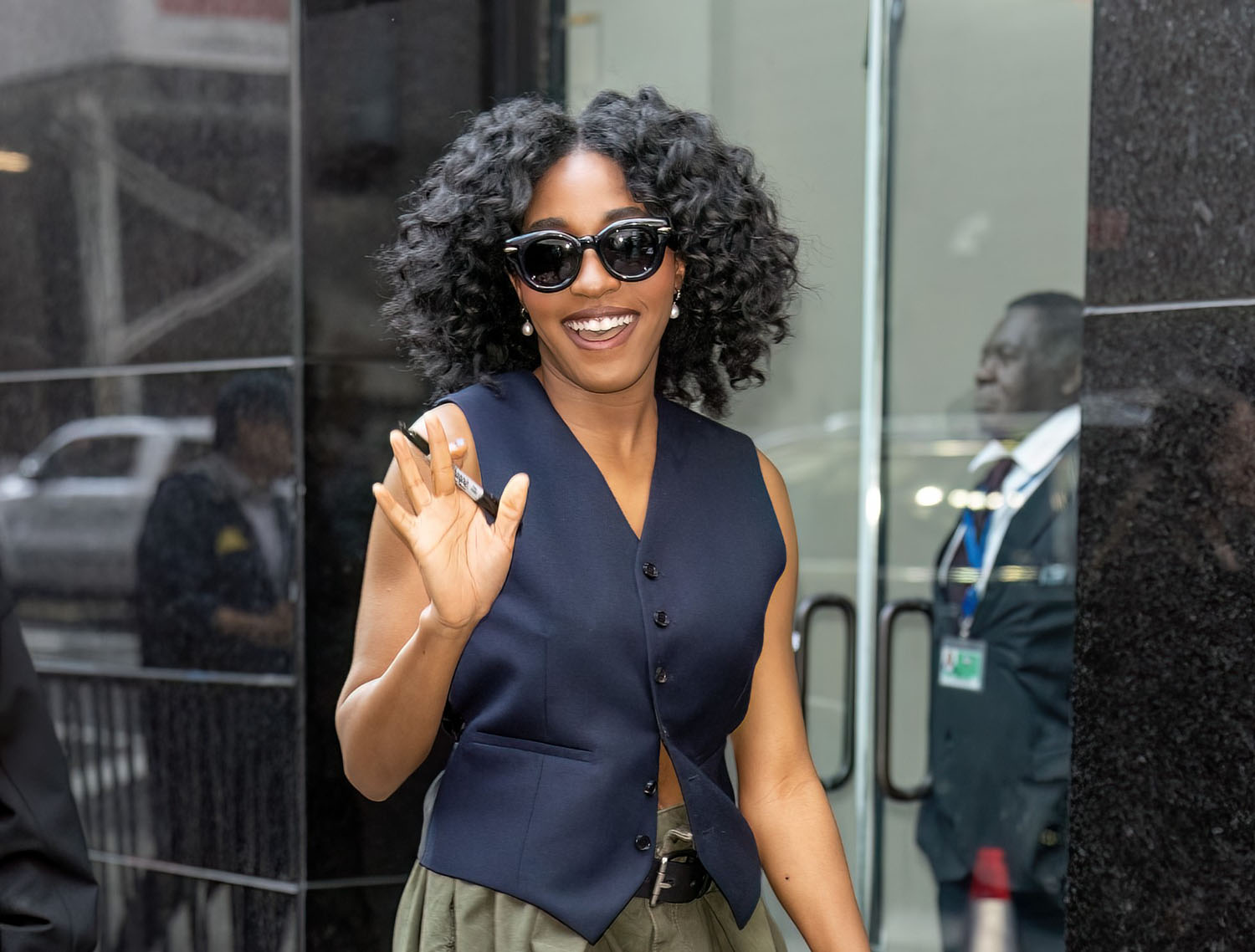 Attached - Ayo Edebiri at Good Morning America yesterday in New York.
