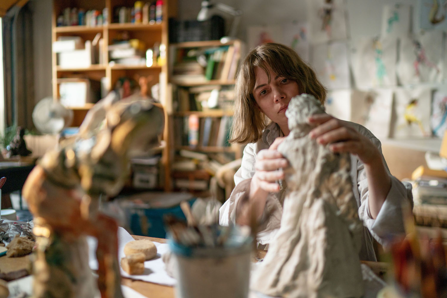 Williams stars as Lizzy, a sculptor in Portland, Oregon. She is preparing for a solo show of her ceramic figurines which are clearly crafted to entrap the souls of her enemies. Her parents are divorced and artists, too, her mother, Jean (Maryann Plunkett), teaches at the colleges where Lizzy, too, is a teacher by day (nepo baby!). Her father, Bill (Judd Hirsch), is a fellow ceramicist, though he has retired. Her brother, Sean (John Magaro), is also an artist, and dealing with an unnamed mental illness. In a worse movie, Lizzy’s family would be a constant source of outsize drama; instead, they provide a low-level stress that Lizzy has learned to navigate by instinct, checking in on her father and his weird friends, calling Mom when her brother is visibly struggling.