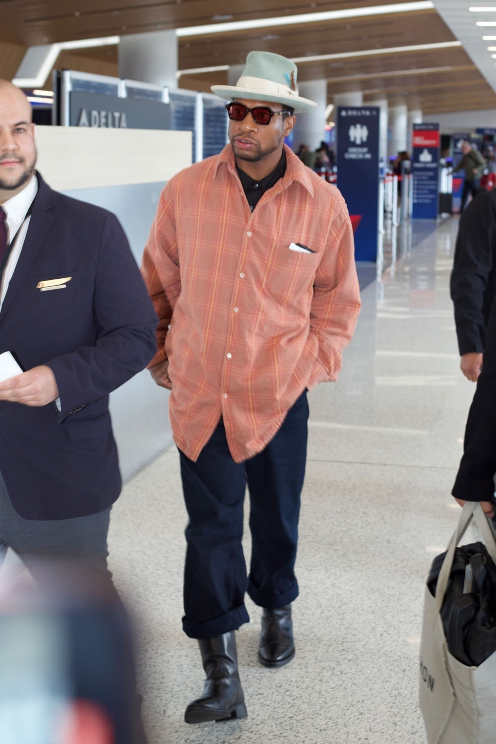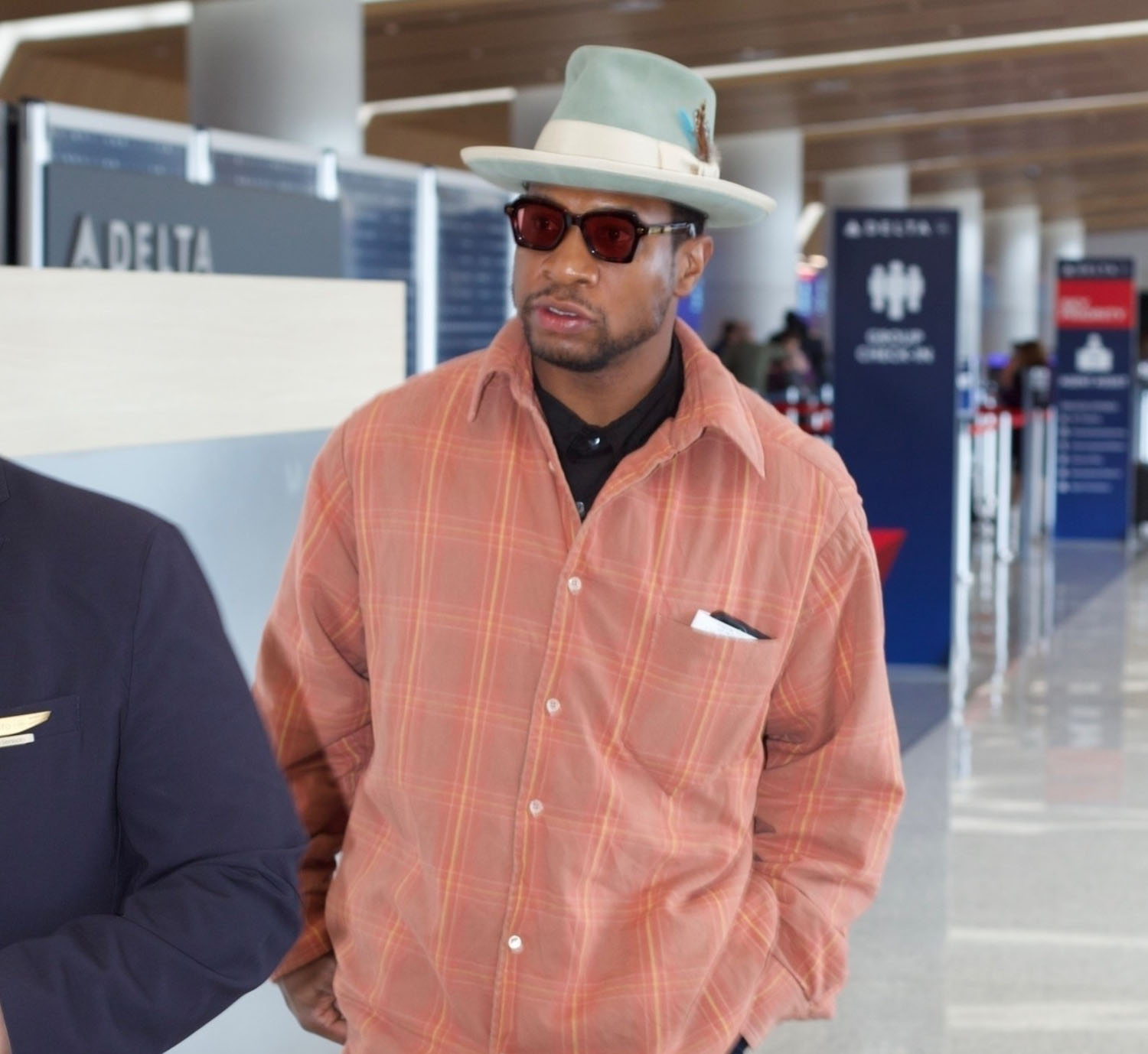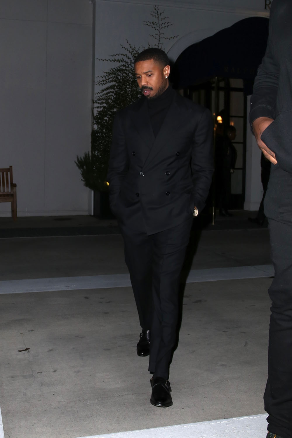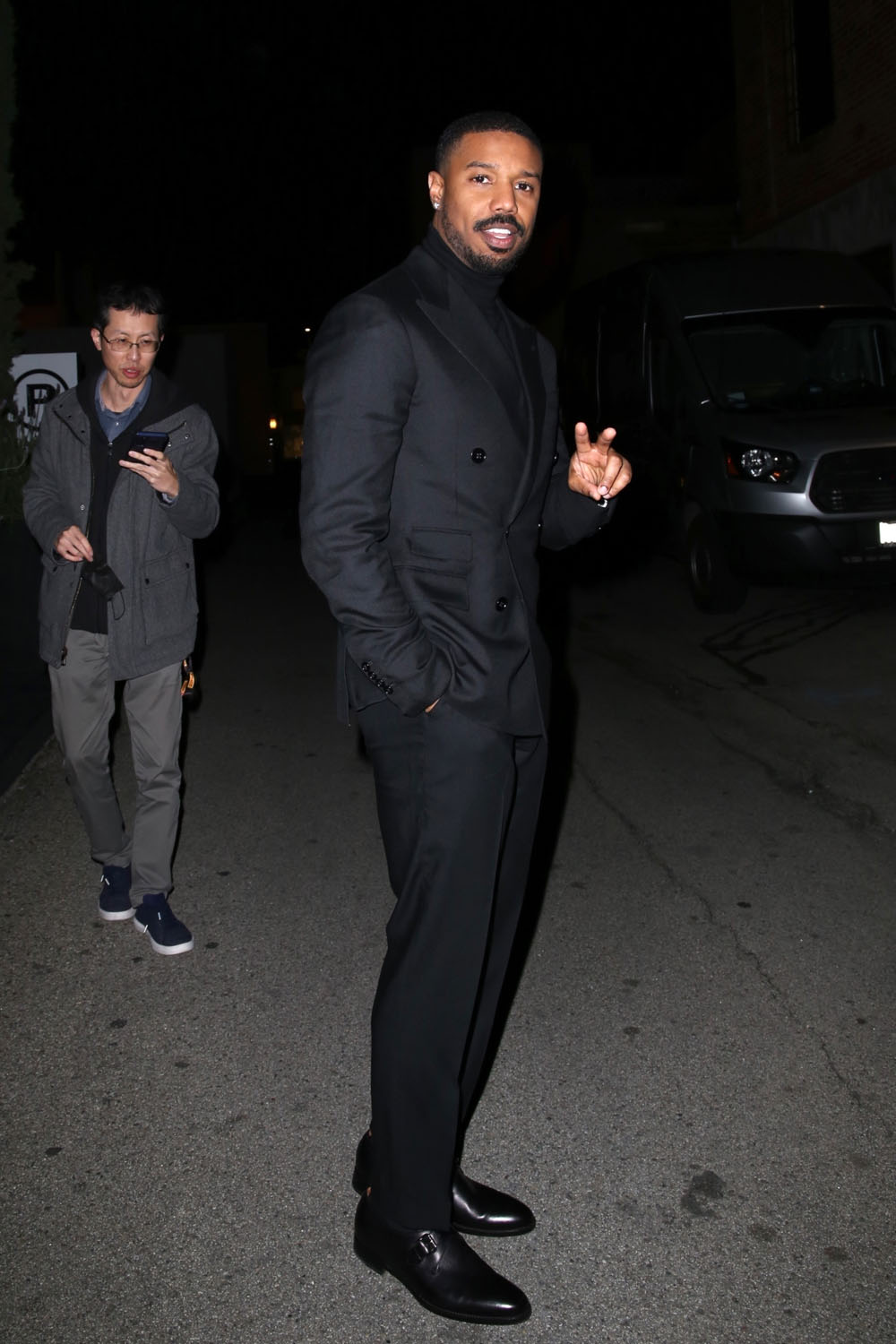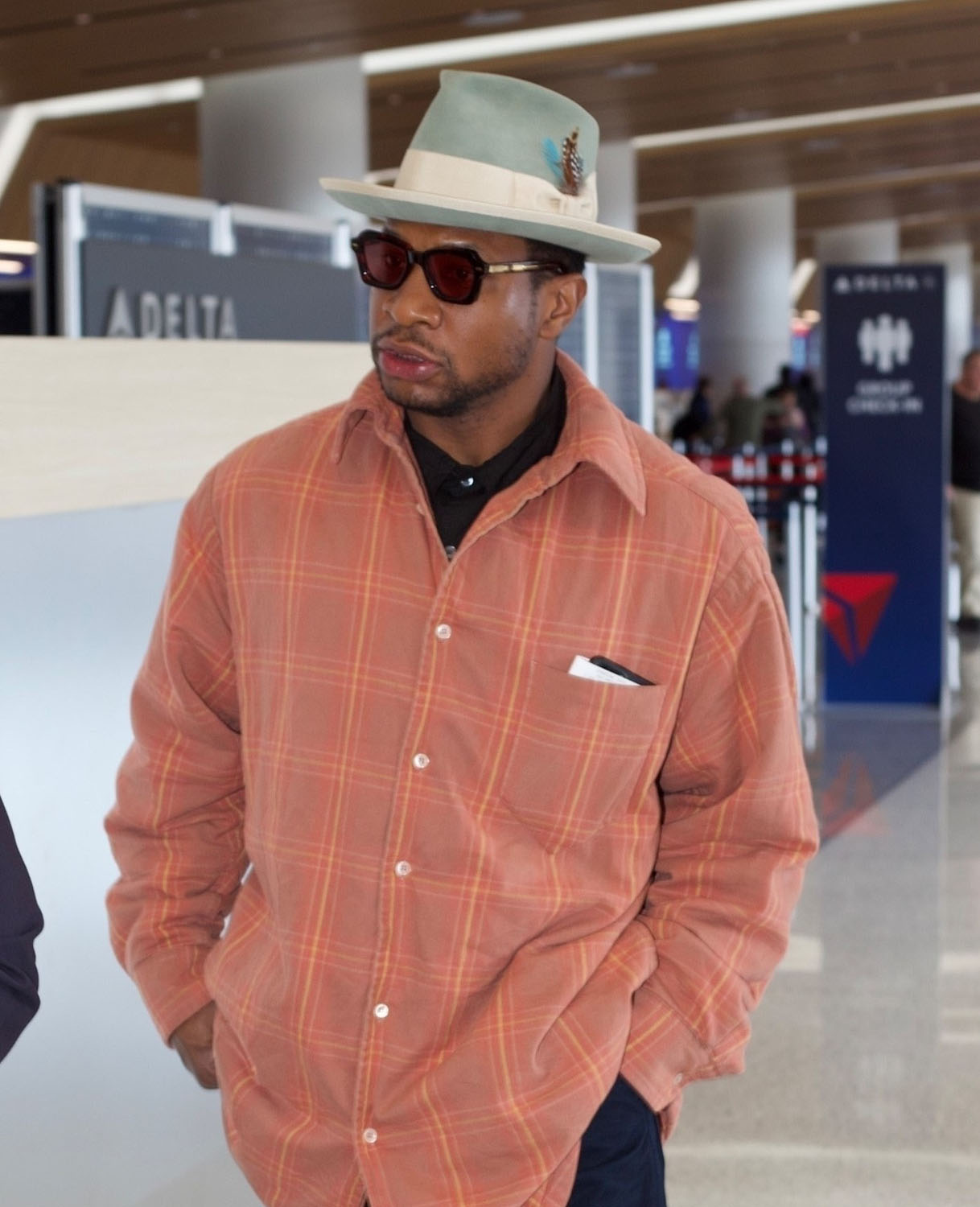 Attached - Michael B. Jordan leaving a Creed III event last night in LA and Jonathan Majors at LAX.
