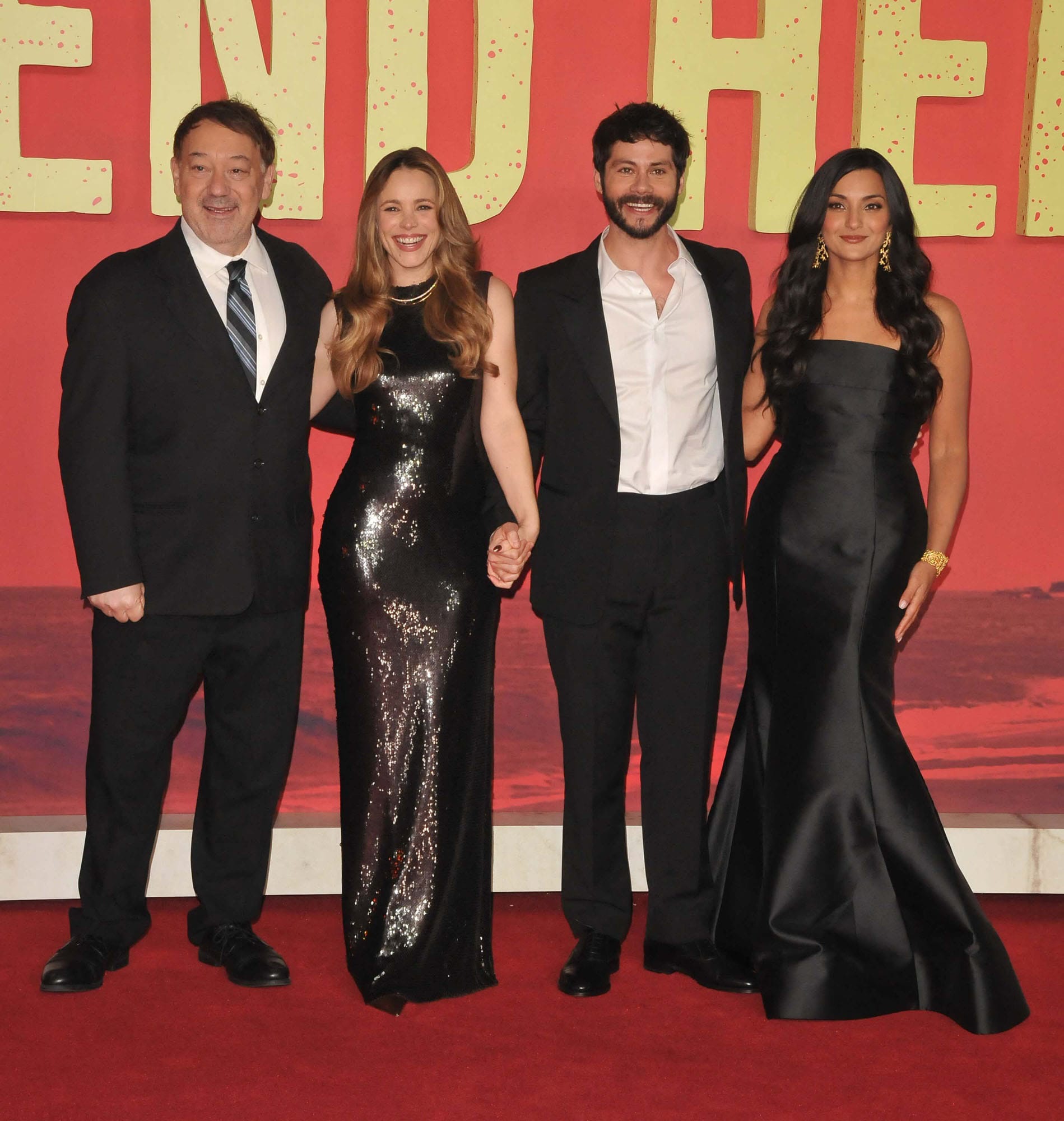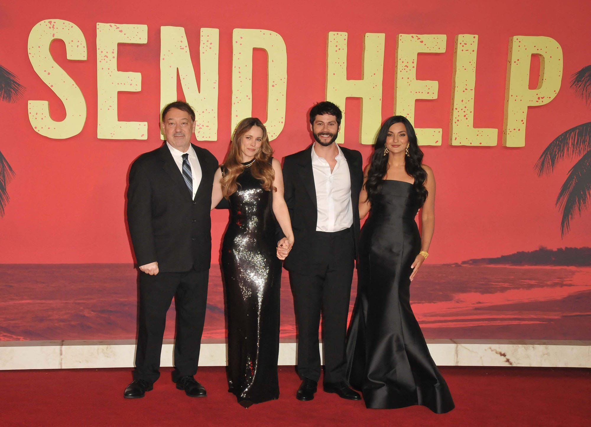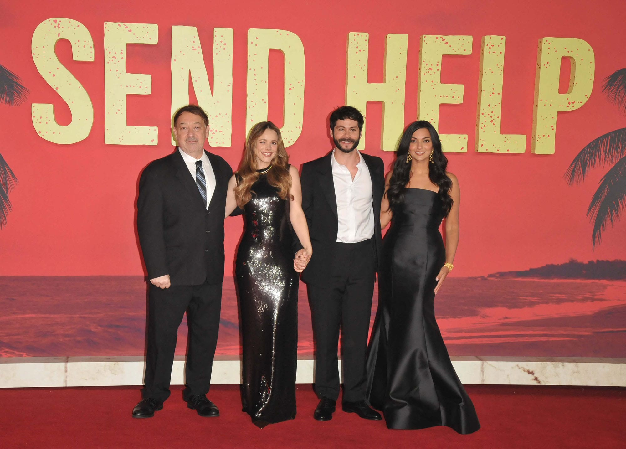 Director Sam Raimi, Rachel McAdams, Dylan O'Brien and Zainab Azizi attend the "Send Help" UK premiere at Odeon Luxe Leicester Square on January 29, 2026 in London, England