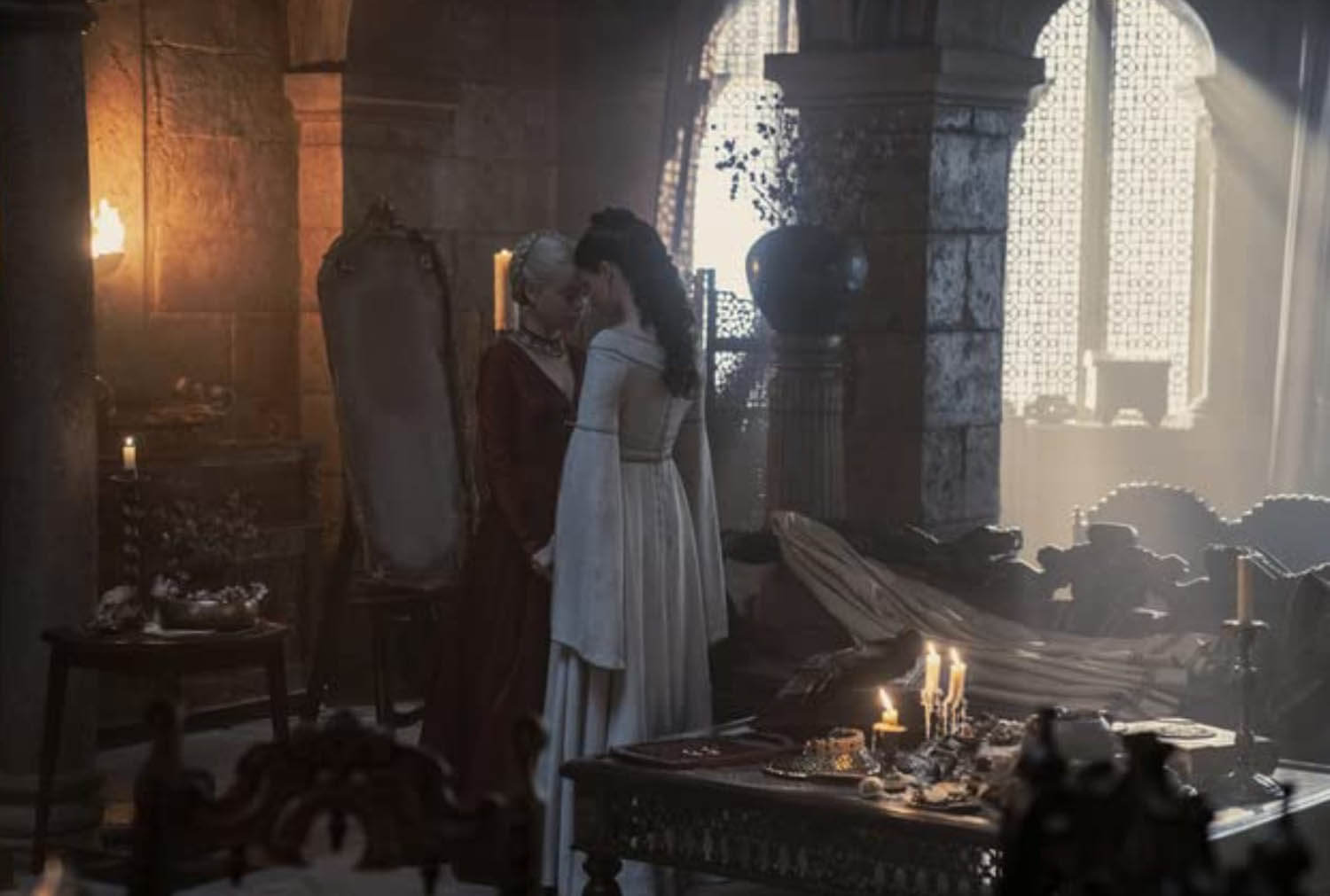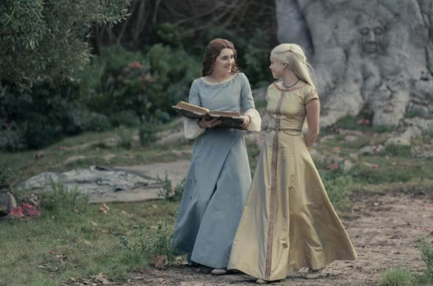For now, though, Rhaenyra is young and unmarried and clearly having some kind of weird incest flirtation with her uncle, Daemon, who is grooming her, and her friend, Alicent Hightower (played for now by Emily Carey), is one of Queen Aemma’s ladies-in-waiting. Alicent’s father, Otto (Rhys Ifans), is the Hand of the King, and obviously plotting to get Alicent, er, close to the king. But with his son and wife dead, Viserys names Rhaenyra his heir, officially displacing Daemon, though it’s pretty clear Viserys will remarry sooner rather than later, thus giving him another chance at fathering a son. But that will keep for a future episode, as this one ends with Viserys letting Rhaenyra in on an old Targaryen family secret, passed down from king to heir for over a century.