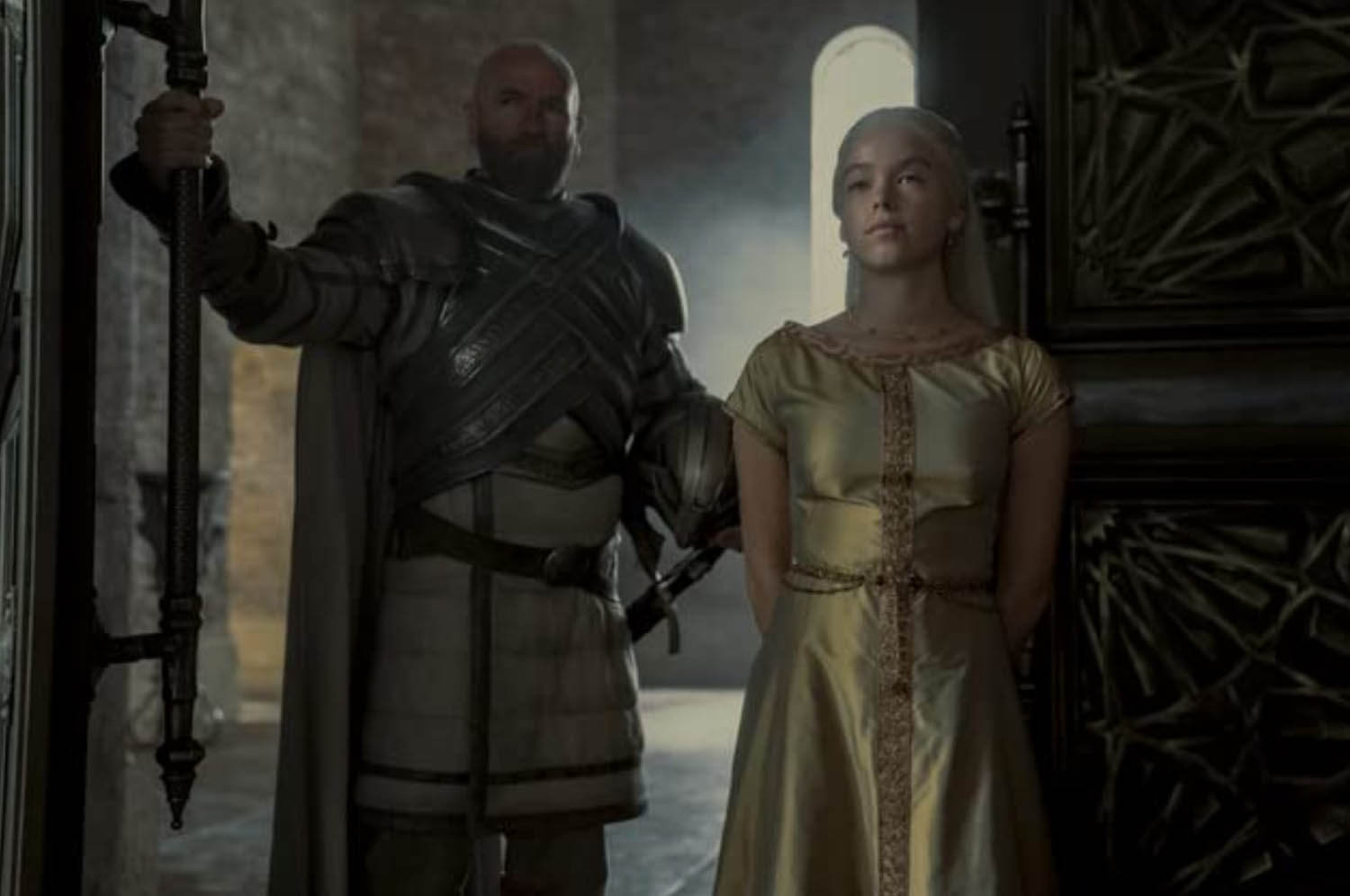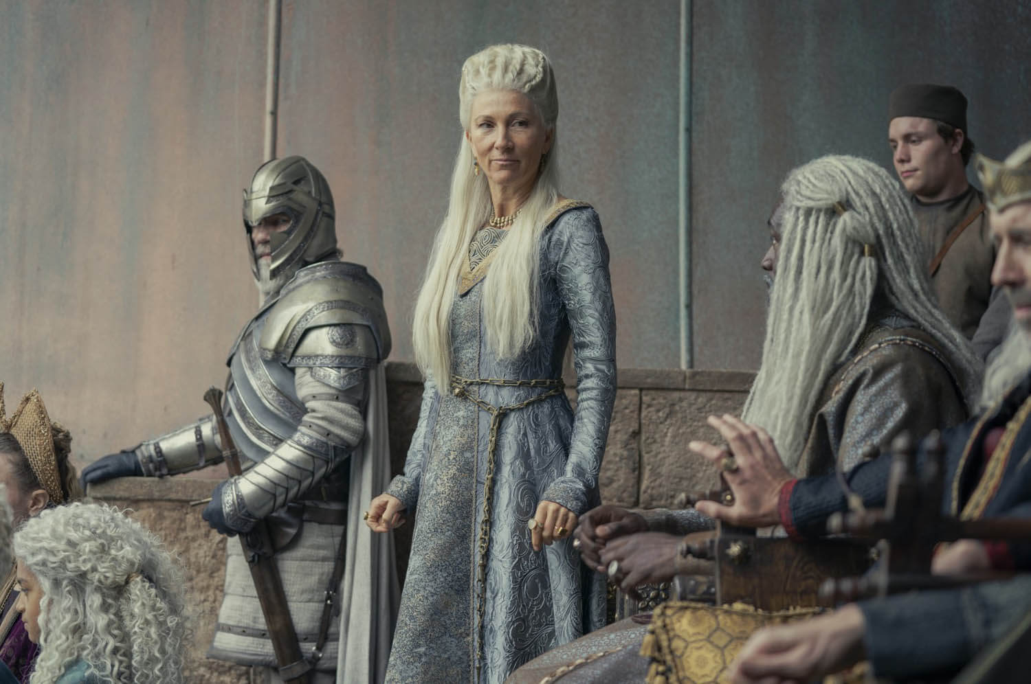 They’ve just enjoyed 60 years of relative peace and prosperity under Jaehaerys I, but that king’s reign is marred by a lack of heirs—despite fathering 13 children, all he has in his dotage is his eldest grandchild, Rhaenys (Eve Best), and his eldest surviving grandsons, Viserys (Paddy Considine) and Daemon (Matt Smith). In Jaehaerys’s waning days, a “council of lords” names Viserys, the eldest Targaryen male, as the king’s heir. Rhaenys becomes known as “the queen who never was”, and we’re to understand Westeros is a toxically patriarchal place, essentially dooming themselves to endless cycles of internal strife because they won’t accept a woman in the line of succession.