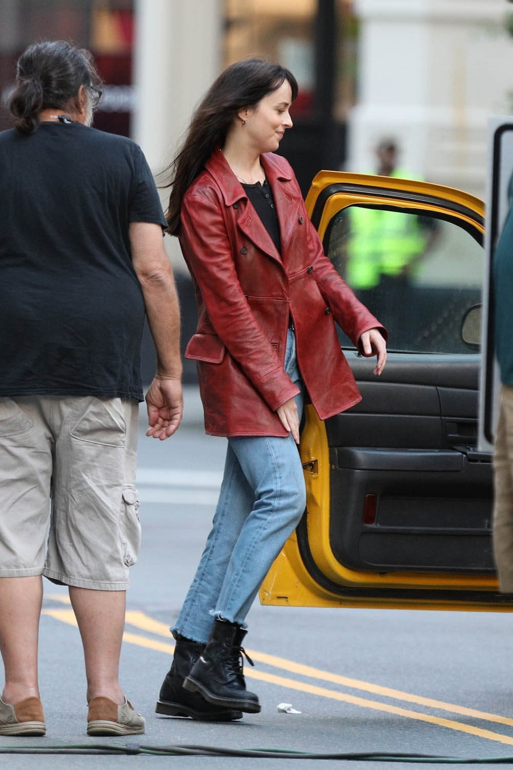 Attached: Dakota Johnson on set of Marvel's Madame Web the other day.