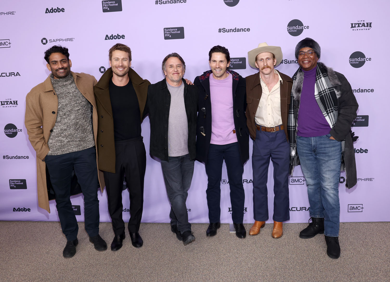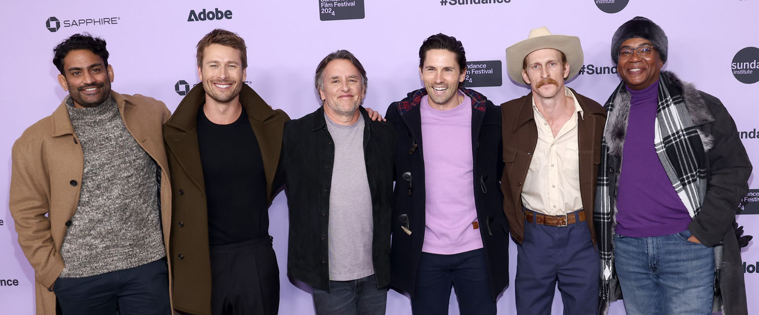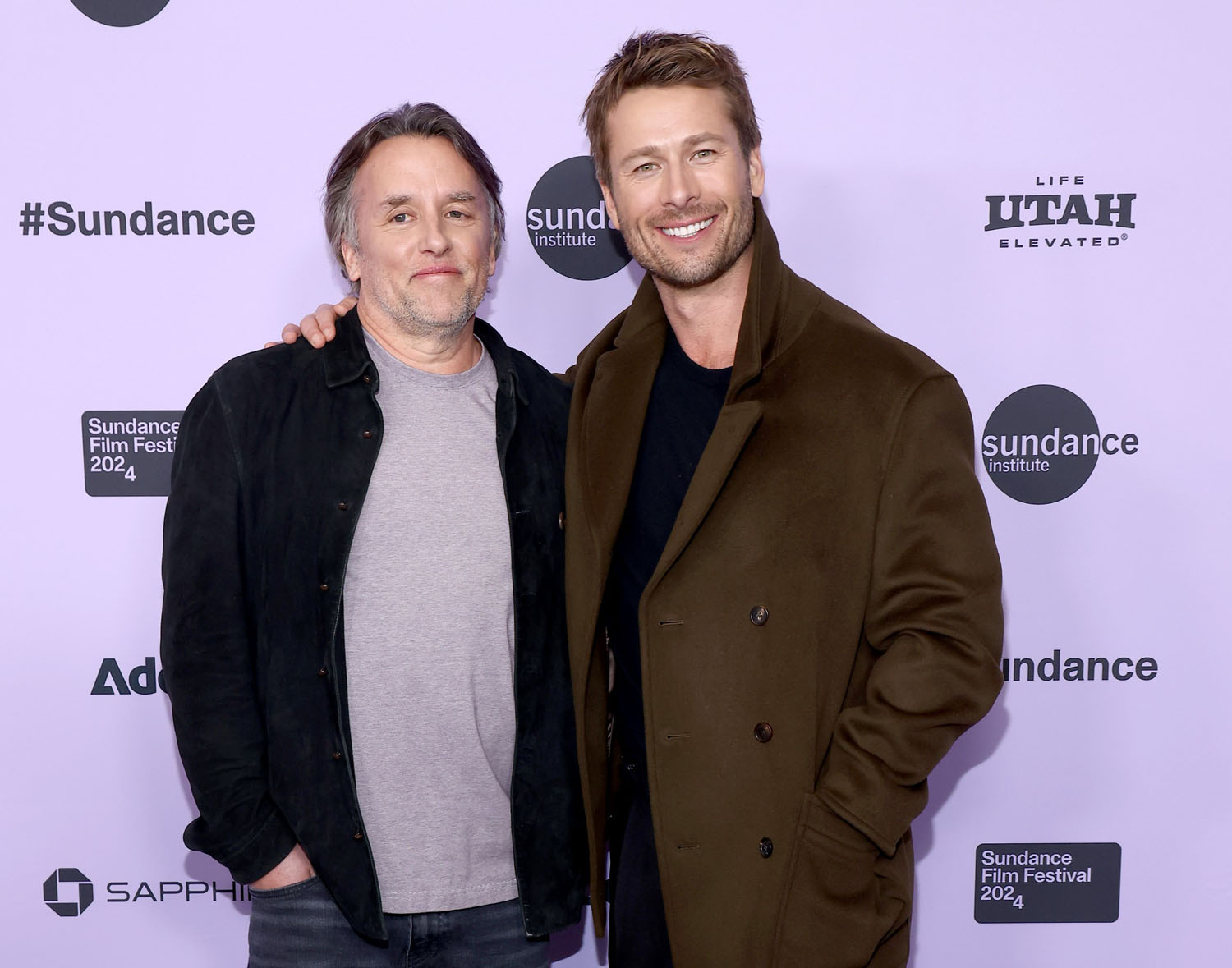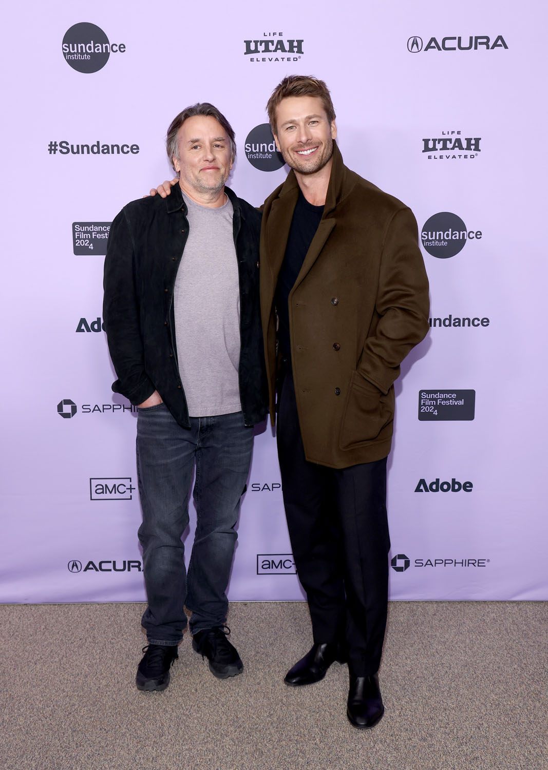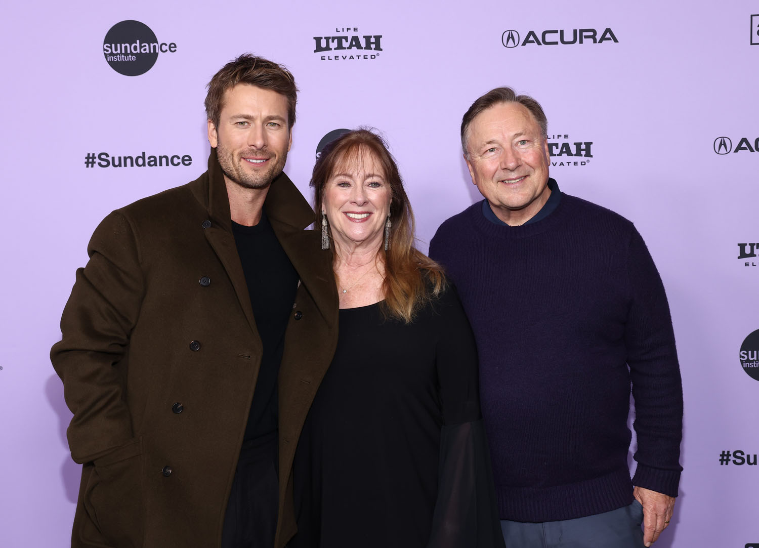 Here is Glen Powell at the Hit Man Sundance screening yesterday, alongside Richard Linklater and, of course, his parents.