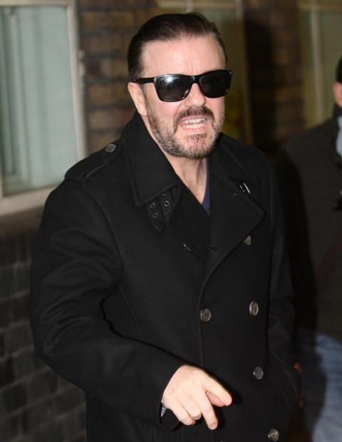 No, we watch the Globes for the Movie Star and TV Star mingling, to see who gets drunk by the opening animation, to see who they talk to during commercial breaks when they all get up out of their seats, and who they DON’T talk to during commercial breaks. And now, we also watch for Ricky Gervais.
