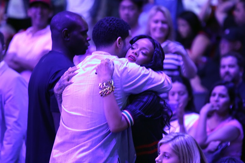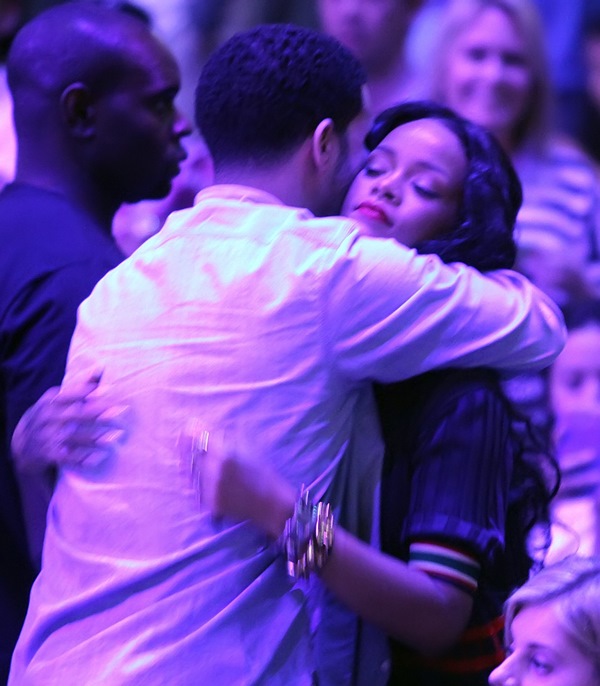 But at one point, Drake went over to see her. And they hugged. And I don’t know how to read this hug. Is there hesitation in her face? Is it because she knows there’s an audience? Is it because she’ll never love him as much as he loves her?