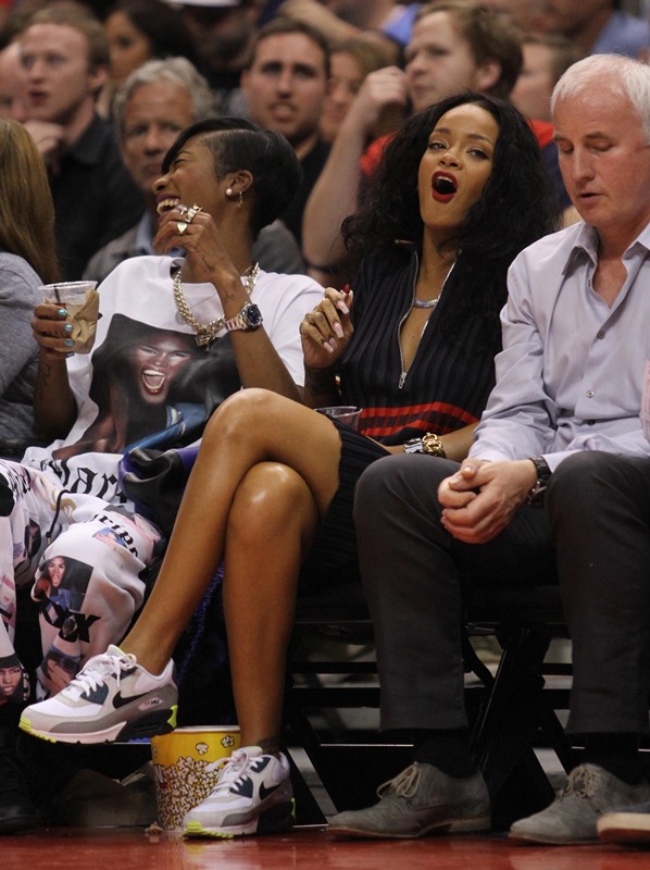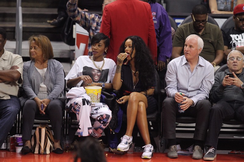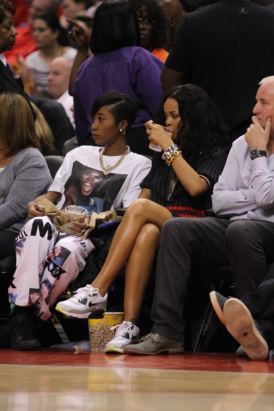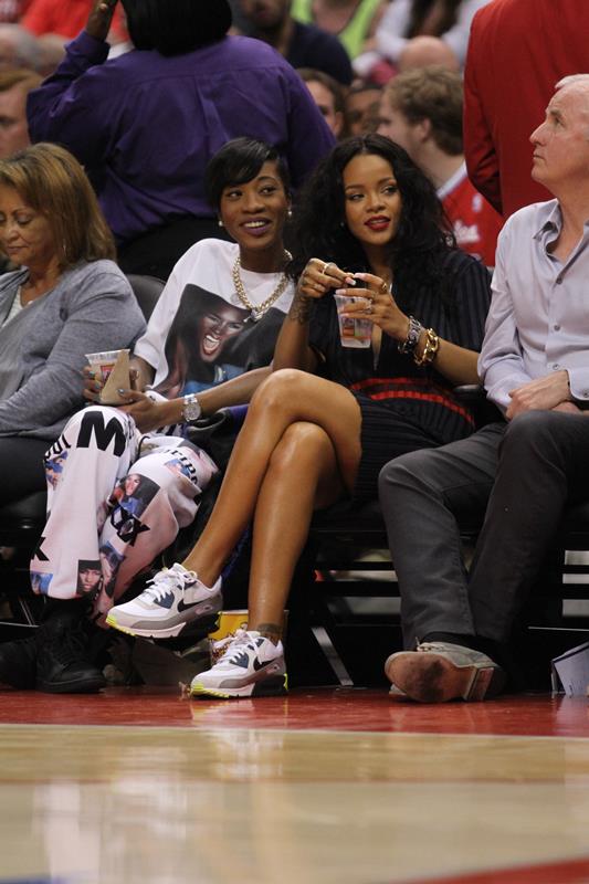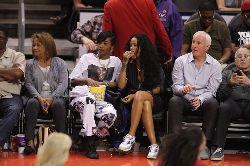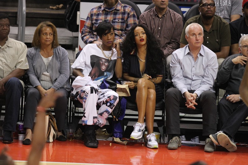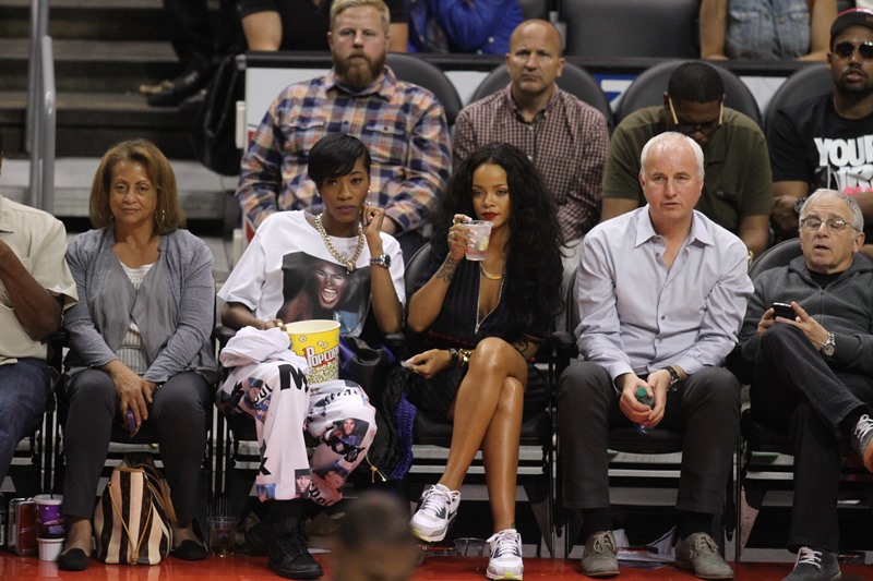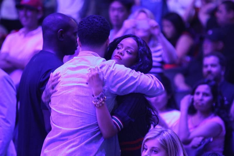 Rihanna and Drake were both at the Clippers game last night. She went with her best friend Melissa Ford. He went with his boys. They sat apart.