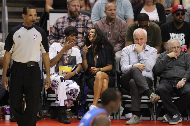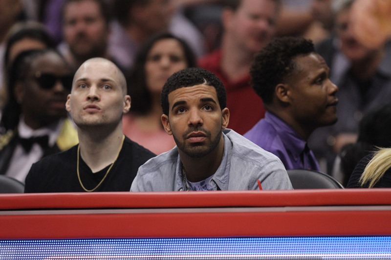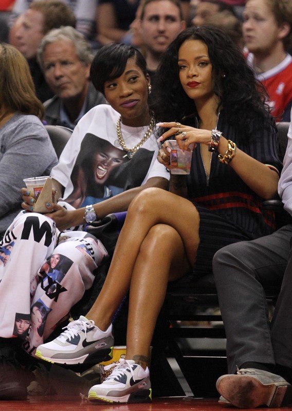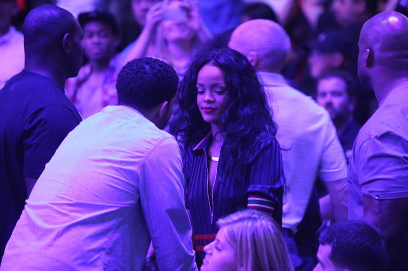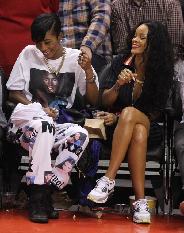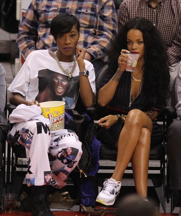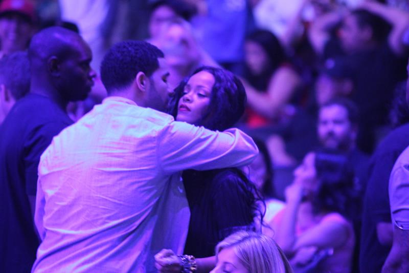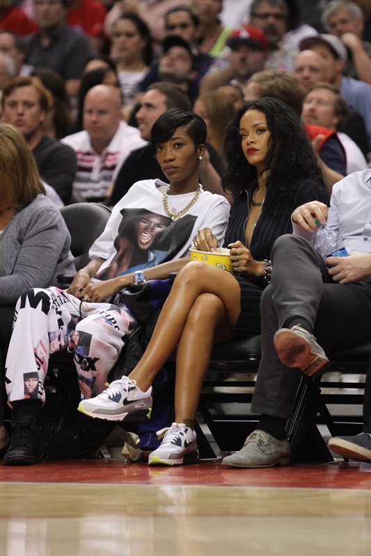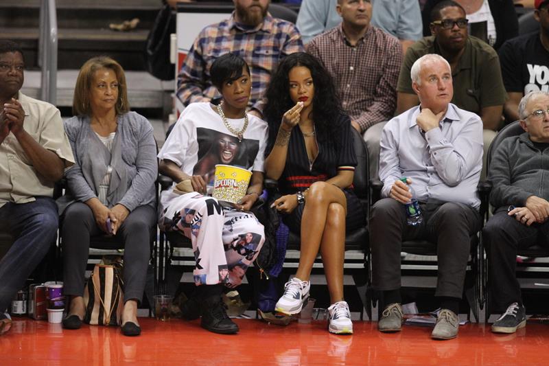 Rihanna and Drake were both at the Clippers game last night. She went with her best friend Melissa Ford. He went with his boys. They sat apart.