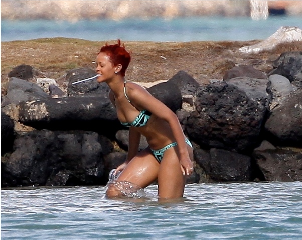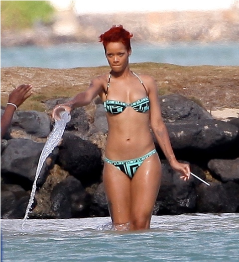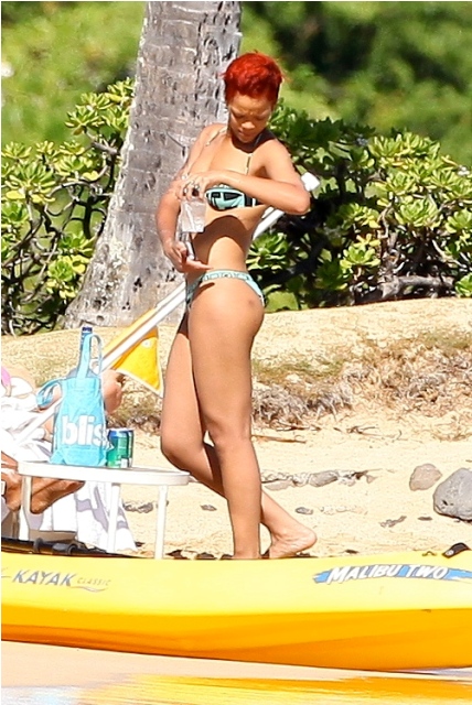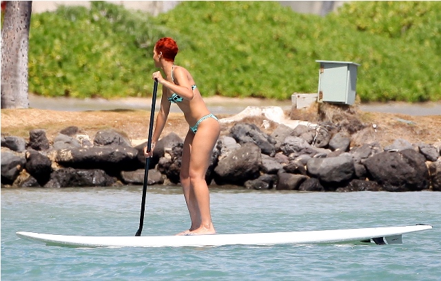 Rihanna is in Hawaii for Battleship. During her time off this weekend she went paddle surfing with family and friends. HOT body. And athletic. And she looks like she’s having a great time. And she also looks like she enjoys food. She works hard, but she enjoys food.
