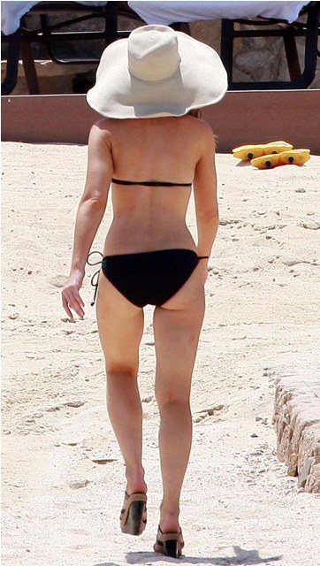 Meanwhile, Kate Beckinsale was in Mexico. Also a very, very impressive body. But as you can see, Kate even overdresses at the beach. Heels make all of our legs tighter, our asses perkier, but for f-ck’s sake, once in a while we can roll in flipflops, especially on the sand, non?