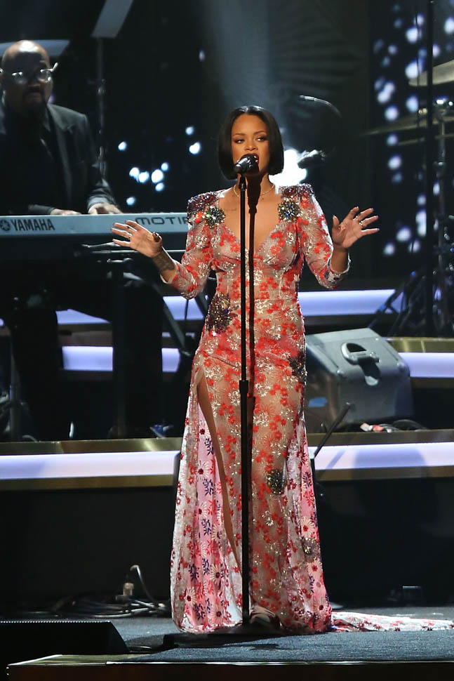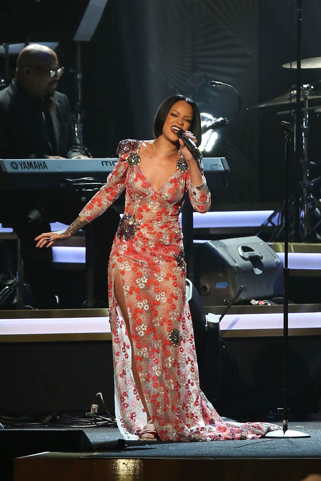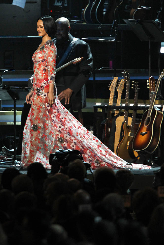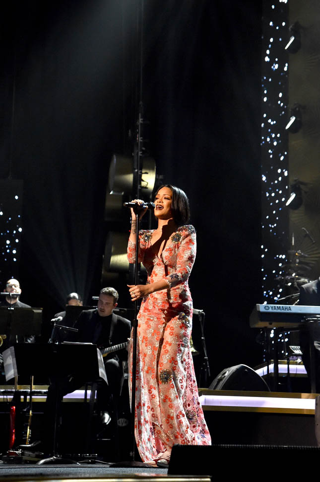 And just as this academic analysis of TMZ was released, TMZ was doing TMZ – breaking the story that Rihanna had pulled out of her performance at the Grammys due to bronchitis. She was in the building, she’d been rehearsing, but could not continue with the live show on doctor’s orders. I believe this. Because on Saturday night she enthusiastically honoured Lionel Richie at the MusiCares gala (photos of her at that event are attached) and also, remember, she kicks off her tour in just over a week or so.