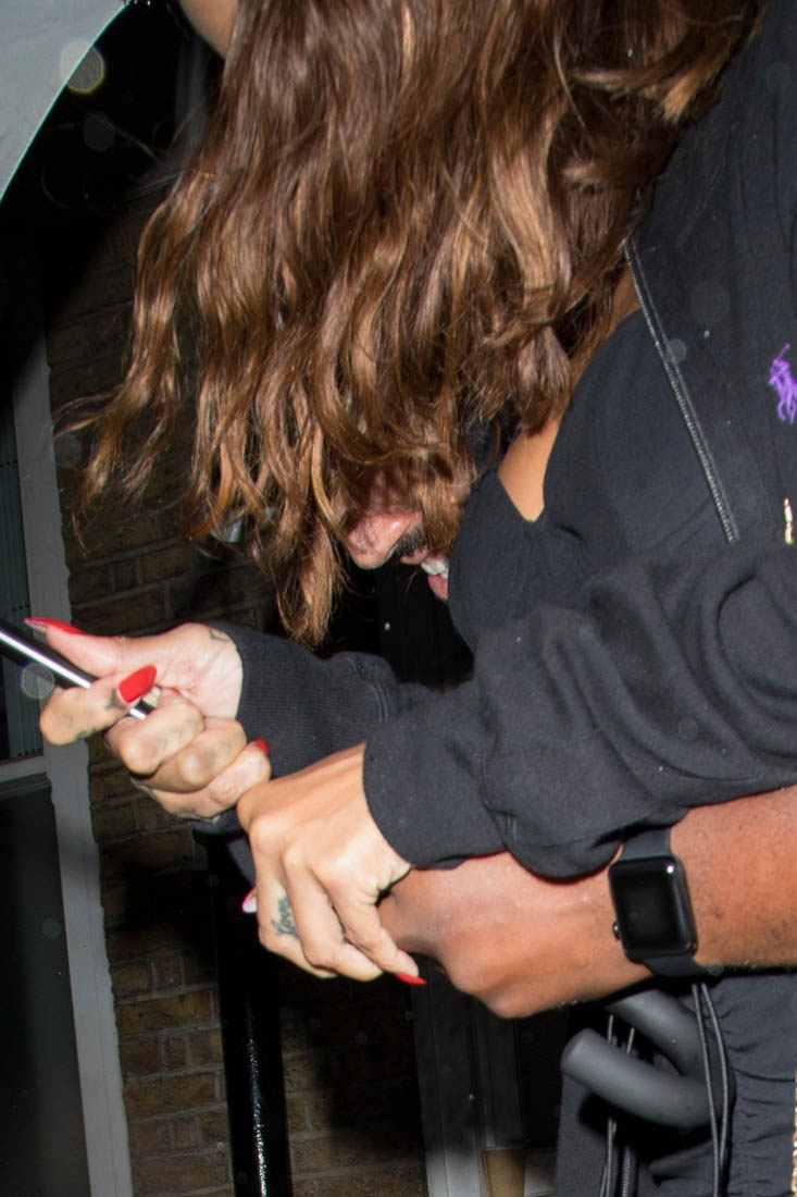 When those photos were released, it was a surprise. Because up to that point Rihanna had managed to keep her relationship with Hassan really quiet. Supposedly they’d already been dating for about 6 months. So it makes sense that since then, we haven’t seen Rihanna with Hassan. Until last night, in London, where they were papped leaving Chiltern Firehouse, although they tried to hide under an umbrella. You can see the side of Hassan’s face mostly covered by Rihanna’s hair in one of the shots.