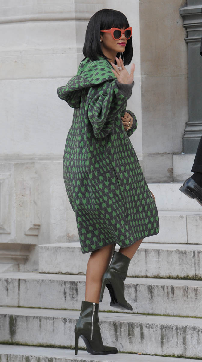 Attached - Rihanna at the Stella McCartney show in Paris yesterday.