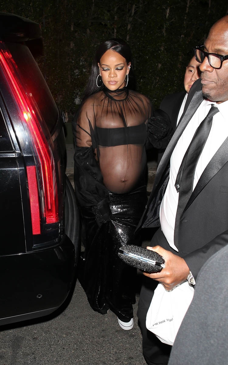 That includes Rihanna who showed up in a sheer and sequined dress – and while much of the discussion during her pregnancy has been about her style, and how she’s elevated the pregnant celebrity fashion game, I feel like we should also talk about her pregnancy energy. Because she has not adjusted her schedule from before she was pregnant.