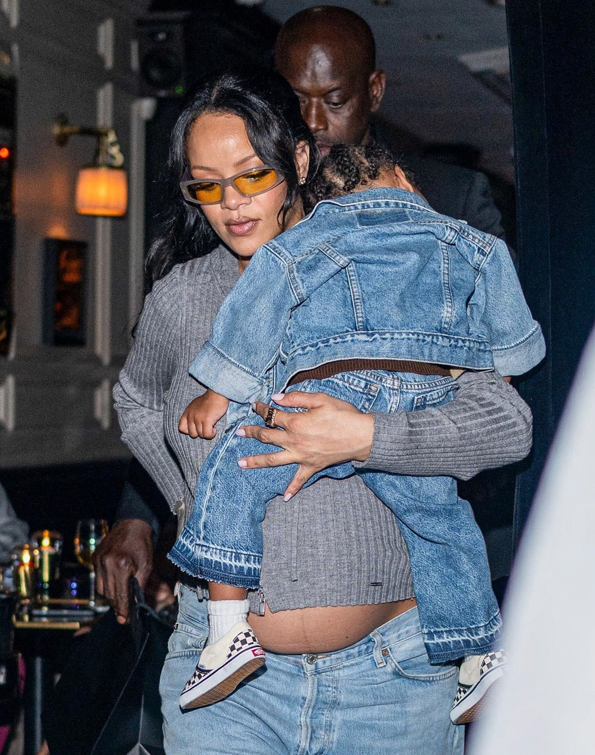 Anyway, Rihanna is back with her maternity style, which “wearing whatever I damn well like whether it covers my belly or not”. She also has not let children stop her nite owl lifestyle. Judge if you will, but I think there is something to be said for kids understanding the world doesn’t revolve around them. Mama’s got a life to live, sometimes she’ll bring you along and sometimes she won’t. I’m sure someone will tell me about why it’s bad to have your kids out late, but so many women I know fear motherhood as the thing that ends their independence, and here is Rihanna, living her life the way she likes, with kids in tow.