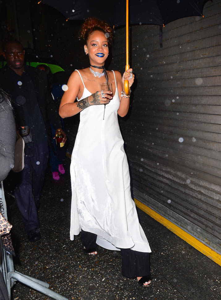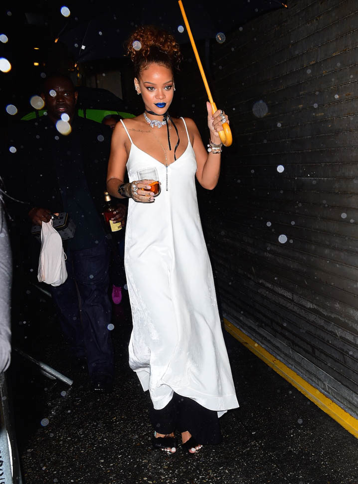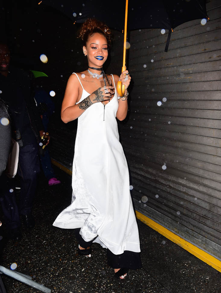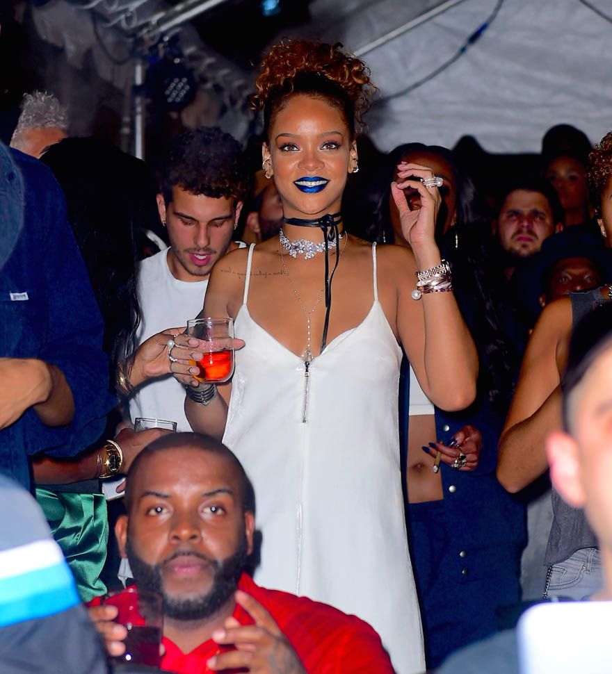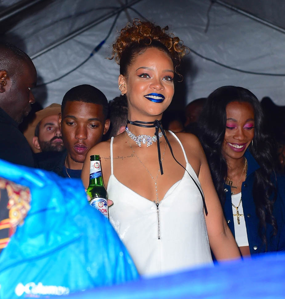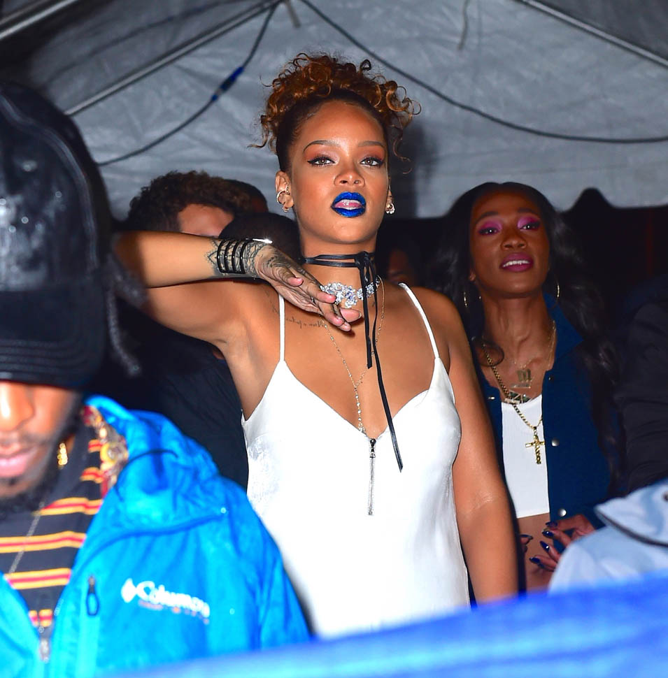 Rihanna hosted a block party in New York last night. And it was the fourth night in a row that she hung out with Travis Scott who performed at the event. They seemed very close all night and word is they’re definitely hooking up but haven’t yet put any labels on whatever it is that’s going on between them, if it’s anything more than just Cool For The End Of The Summer. We saw her earlier this summer with soccer player Karim Benzema, similar situation. They went out several nights in a row, in New York and LA. And then it was done. Same could happen with Travis by next week.