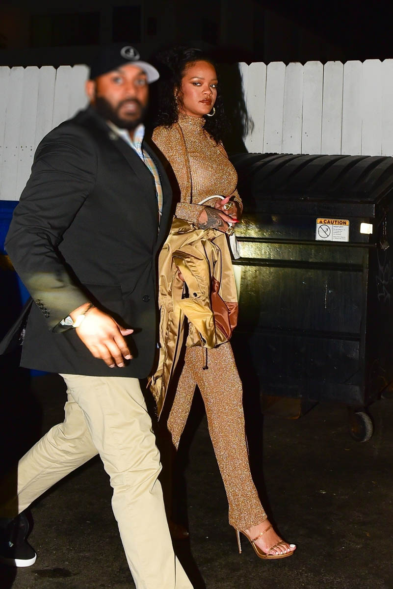 Back to Rihanna – she was seen at her favourite restaurant, Giorgio di Baldi, in Santa Monica the other night in gold. The place was actually closed when she arrived. Obviously you open up the kitchen if RiRi wants carbs with her girlfriends. She and her crew are now in Cabo enjoying some downtime.
