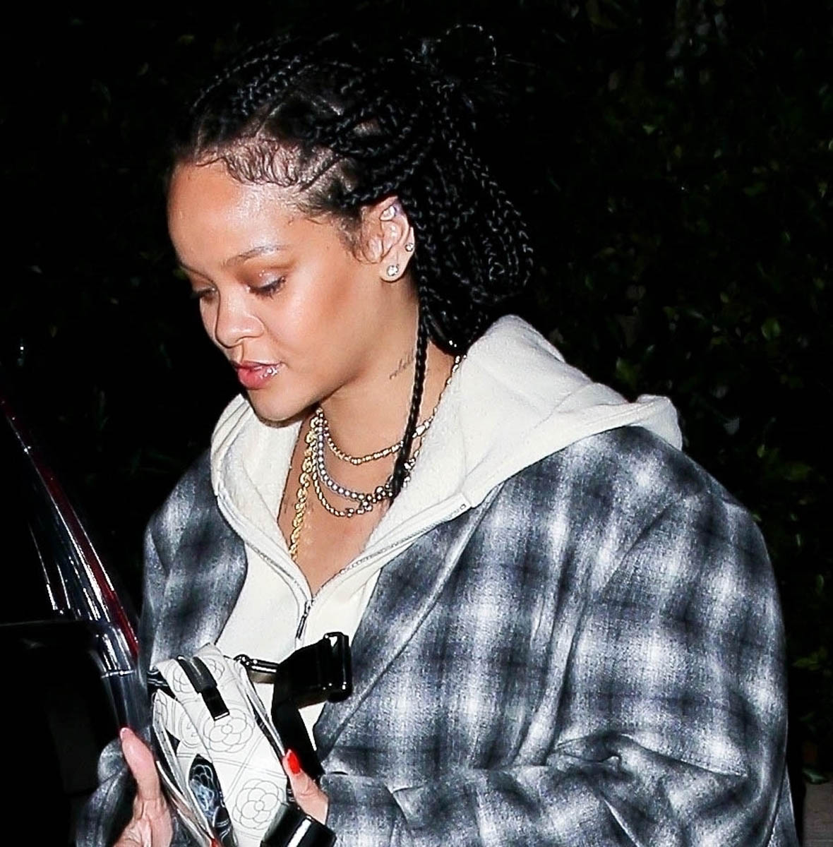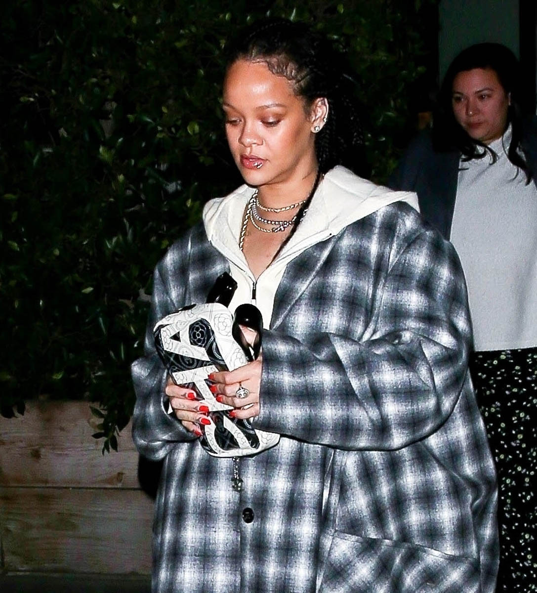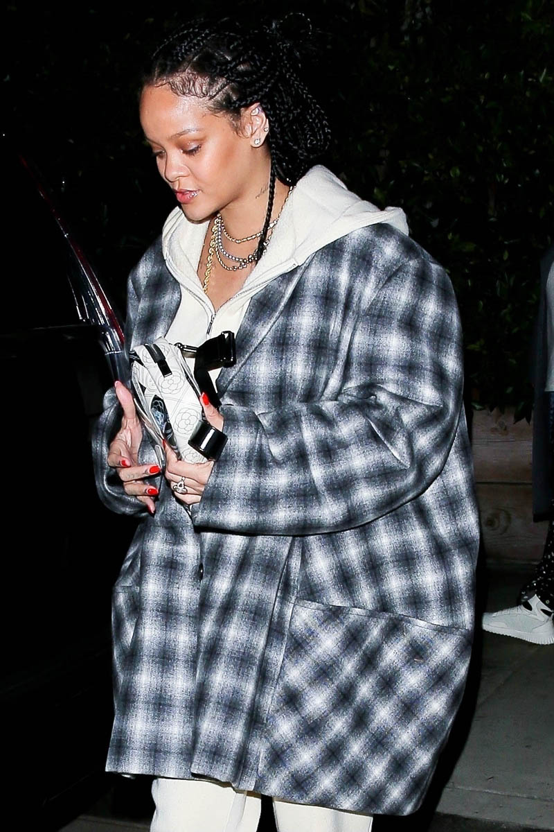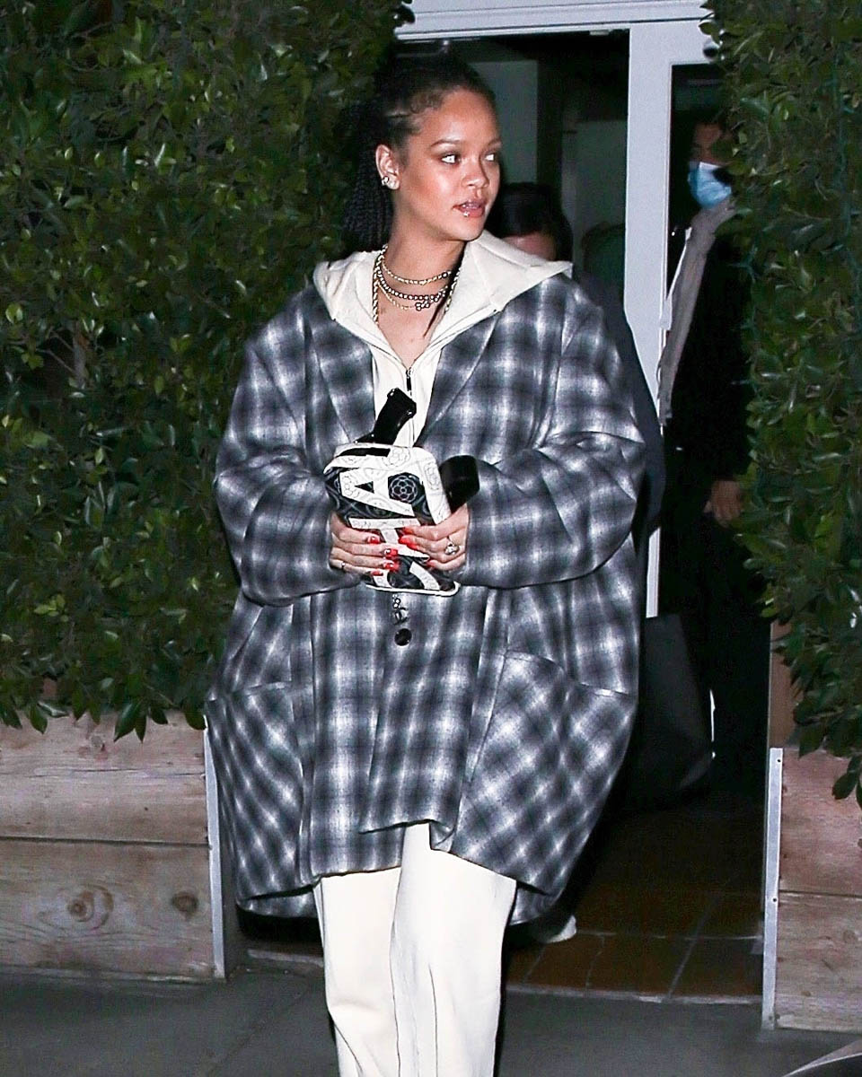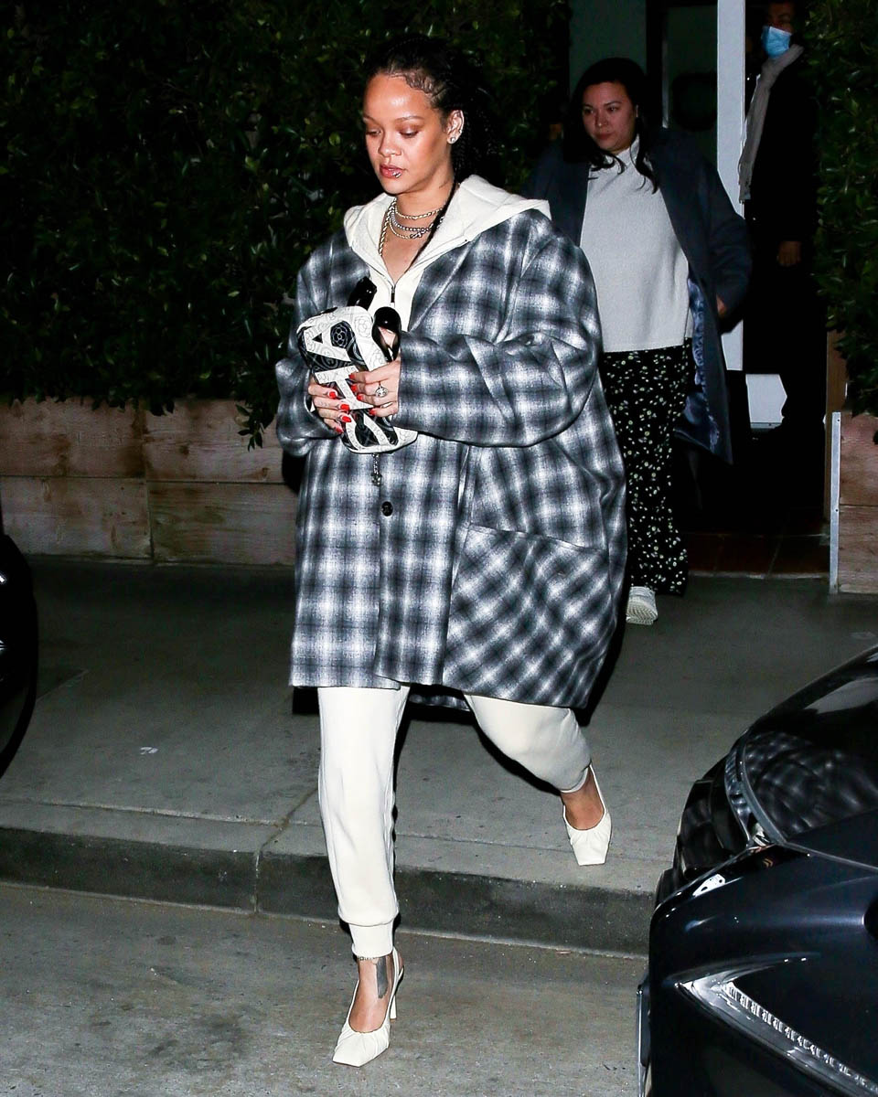 Rihanna was seen last night where she is often seen when she’s in LA: Giorgio Baldi, her favourite restaurant. And wearing what she’s often seen wearing: a great outfit. This is a white hoodie over white joggers, an excellent oversized blazer coat (that I initially thought was hooded, which would have made it even better), and a Chanel bag. Because the luxury label she’s usually affiliated with is… Dior. And LVMH owns Dior. And partners with her on her own fashion house. And Chanel is a competitor, at least for now. But Rihanna wears and carries what she wants.