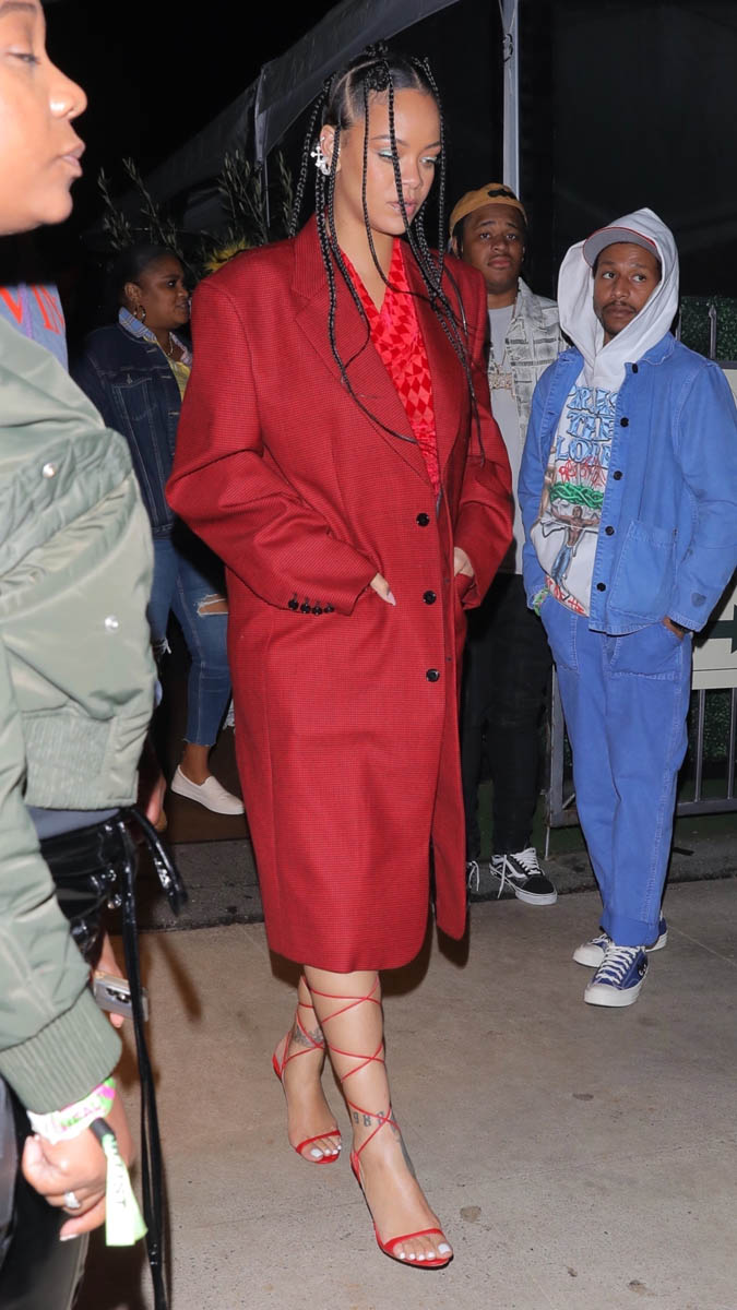 Rihanna stepped out the other night to support A$AP Rocky when he performed at ComplexCon in Long Beach. Rocky is marking the tenth anniversary of his mixtape, Live.Love.A$AP and gave the crowd a run-through of the tracklist and styled himself in the fashion of his back-then. As you can see, RiRi was into it. As you can also see, dressed in all-red, with those new amazing braids, RiRi wasn’t there to blend in: