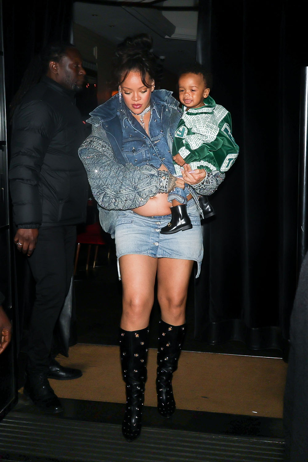 And then, of course, there’s Rihanna’s fit. The jacket, the skirt, the boots, the makeup, the hair – all of it is excellent. But I do have a note on the hair because she’s wearing it up, and this is smart. You see those metal studs all over her coat? I wore a coat with similar studs on it the other day and had my hair down and it got caught in all that hardware, must have pulled or broke at least 50 strands. That’s a PSA for anyone out there thinking of buying a similar style: when you wear it, make sure your hair is out of the way because otherwise you’ll lose it.
