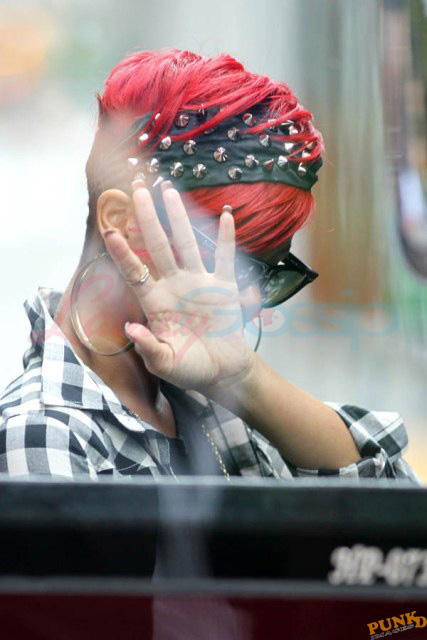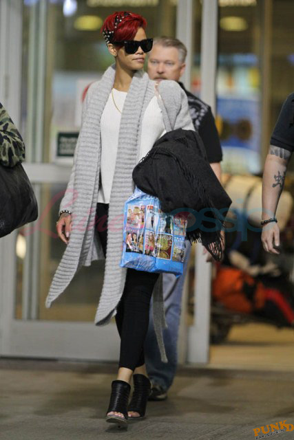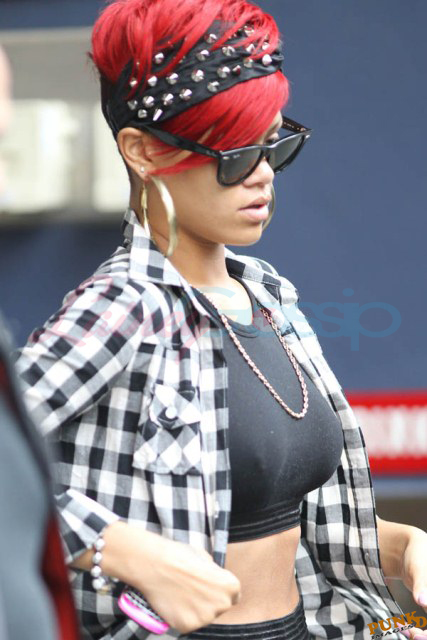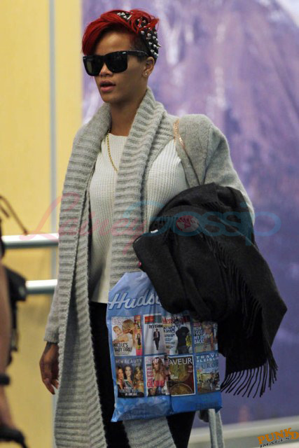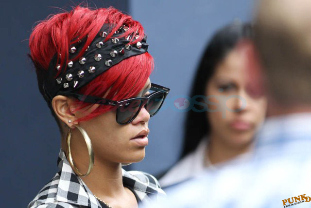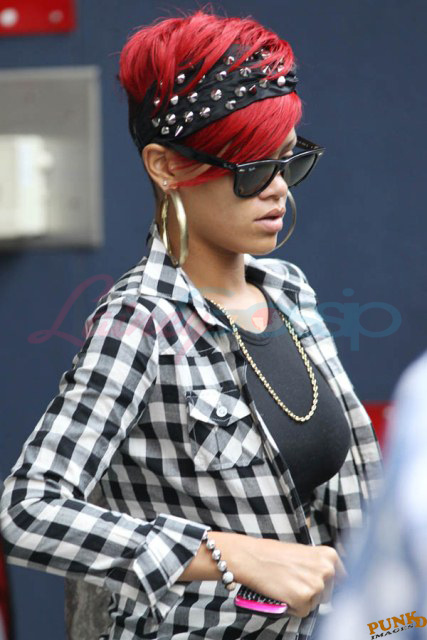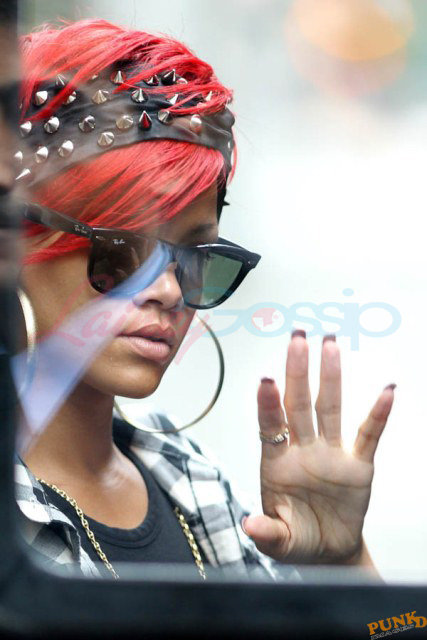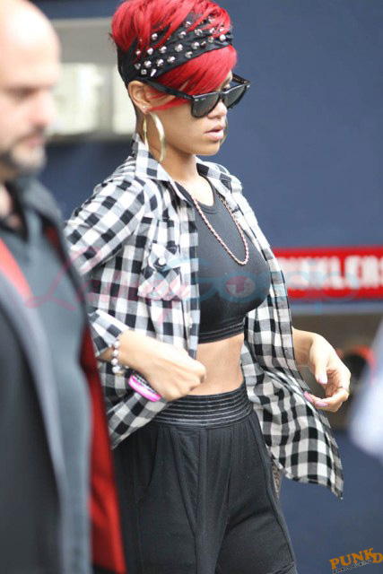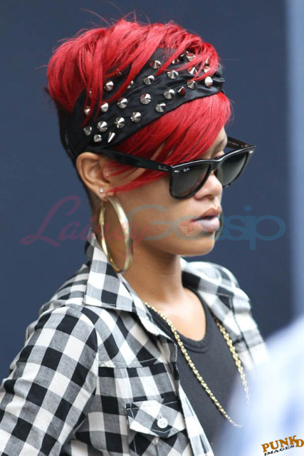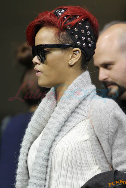 Rihanna played Vancouver last night to kick off the North American leg of her Last Girl on Earth tour. She arrived on Saturday casually dressed by her standards but still working a killer studded headband. Love it. I thought it was leather at first but upon closer inspection it appears to be a cotton wrap. Whatever. It’s her new favourite accessory and it’s amazing.