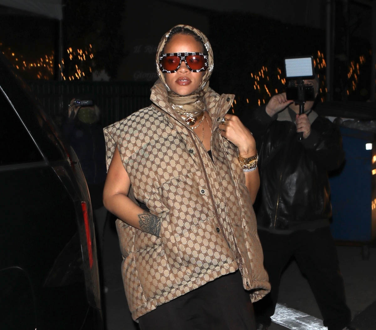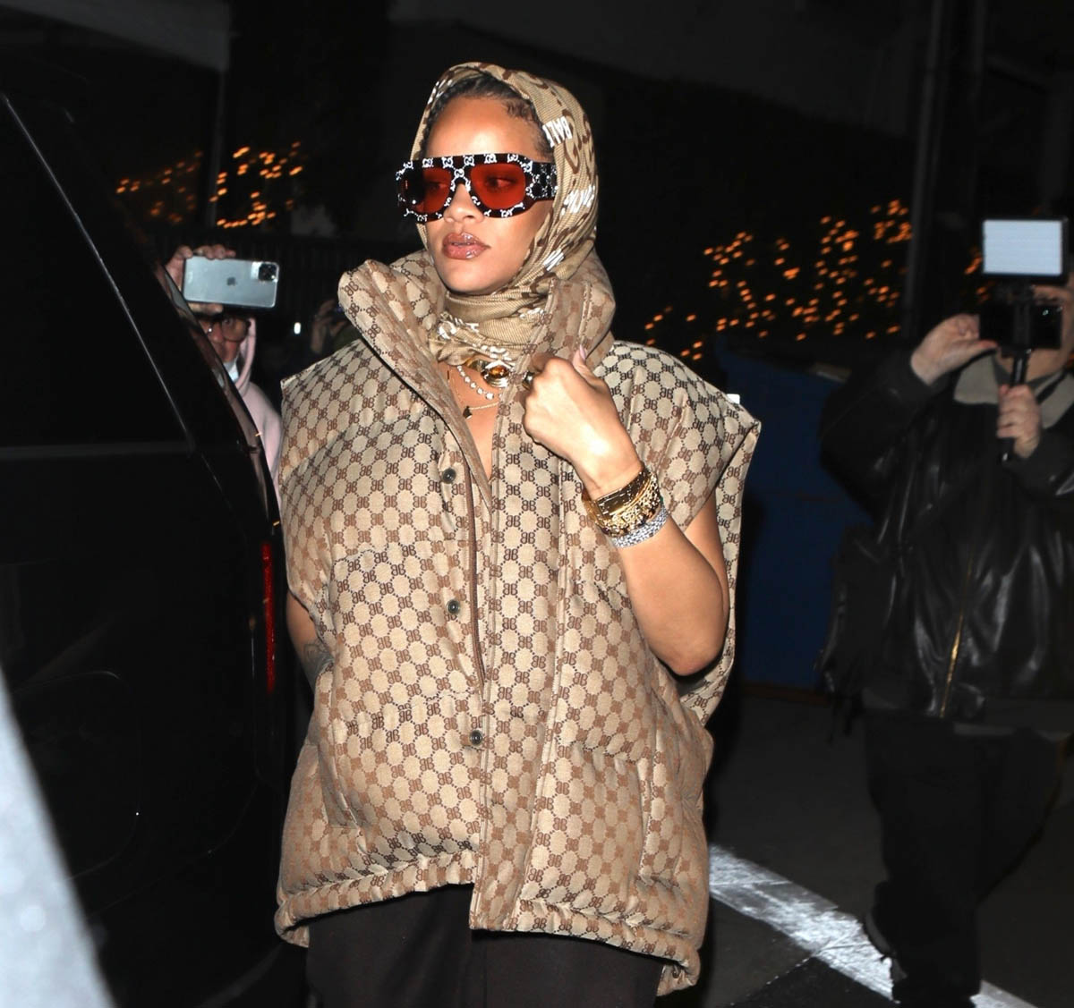 There’s only one answer: you’ll get it when you get it. And it’s not going to be soon. While we’re here though, let me show you another RiRi outfit I didn’t get to post from last week. She’s went out in the Balenciaga X Gucci Hacker Project puffer vest and headscarf. And of course she styled it perfectly.