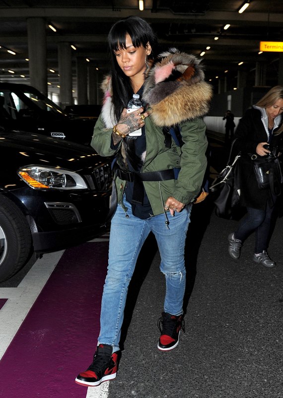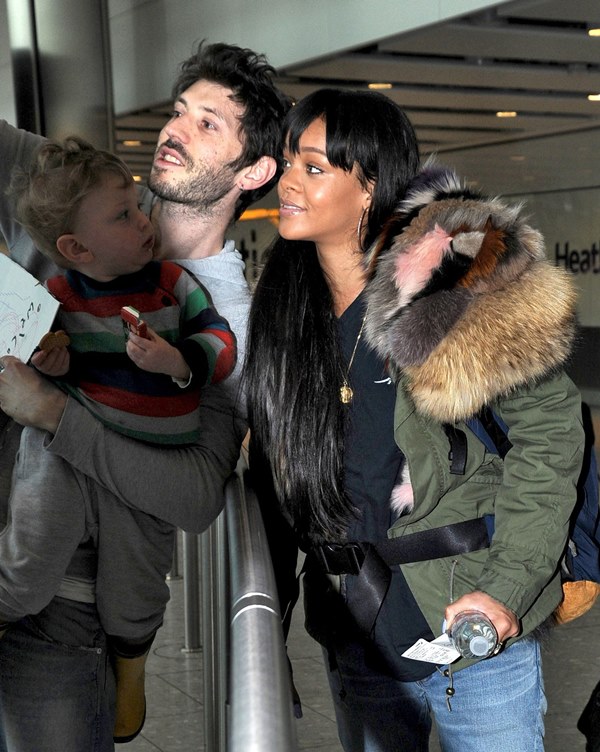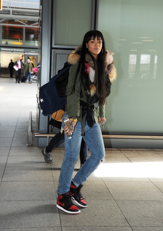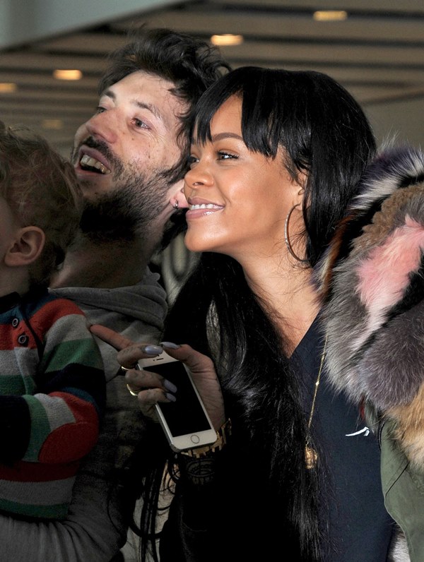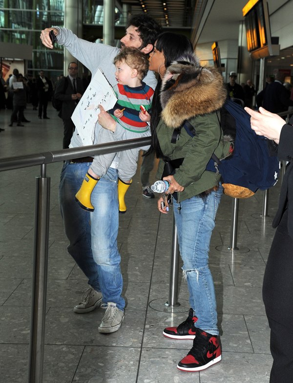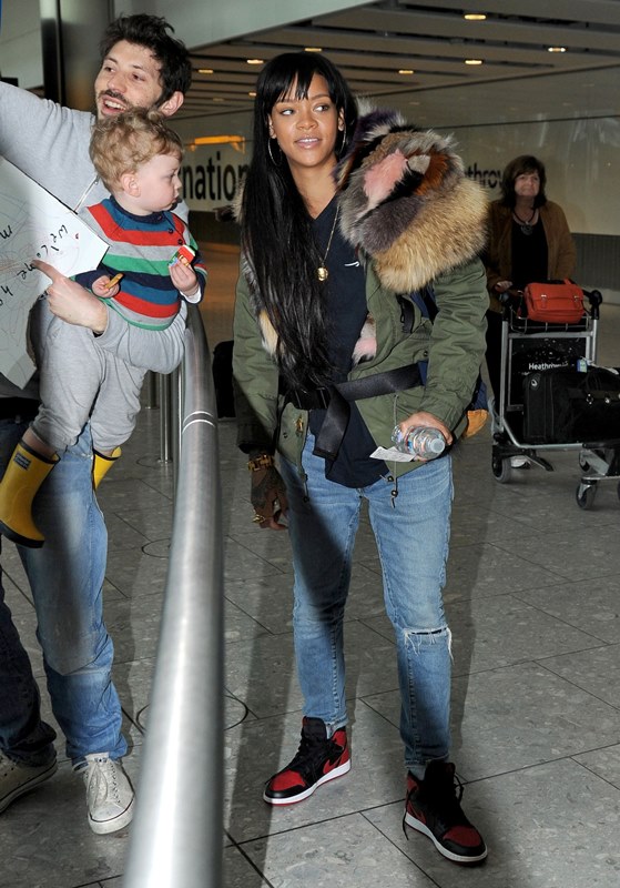 Check out Rihanna landing at Heathrow and stopping to take photos with fans.