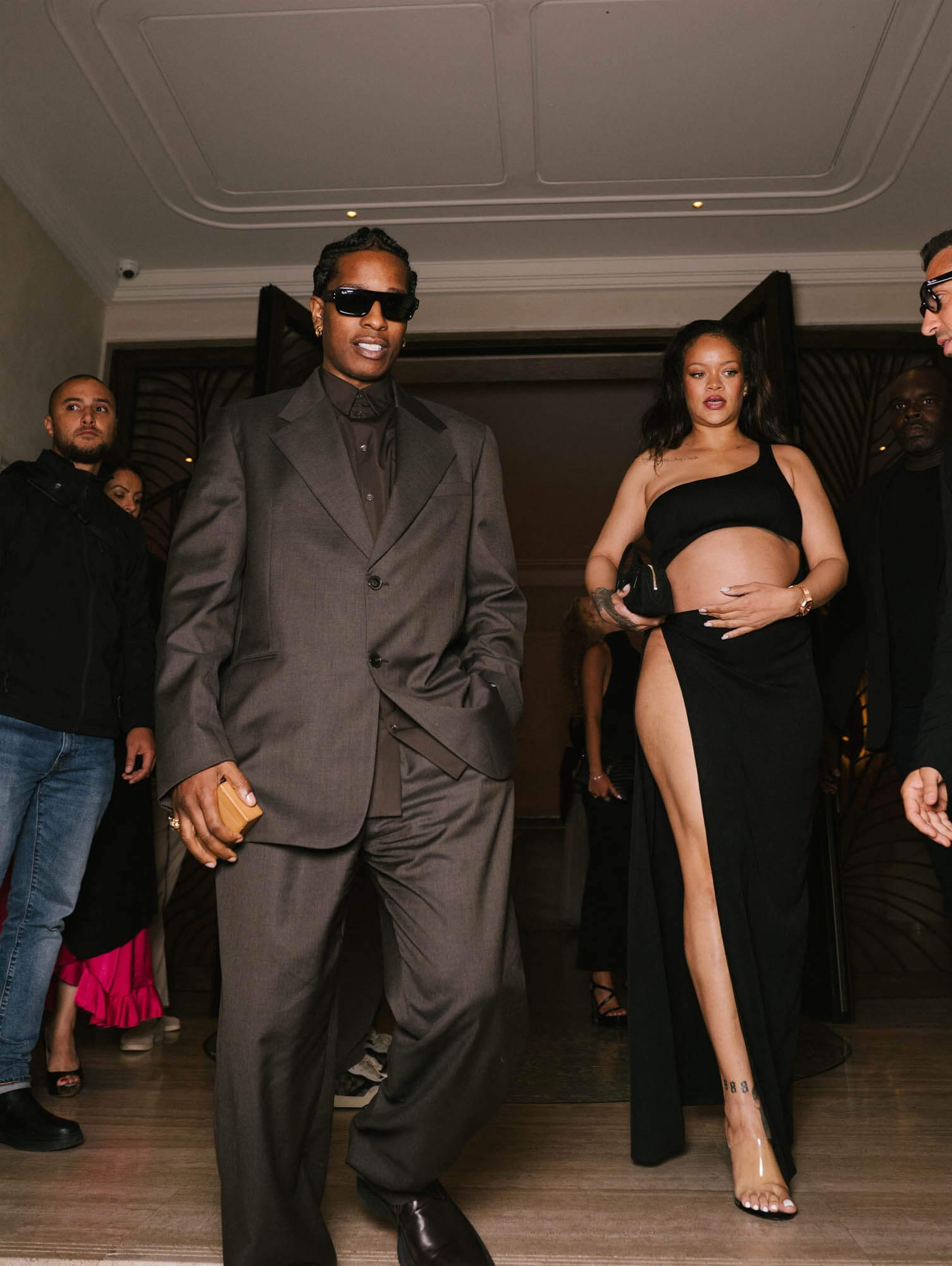 It’s sexy, for sure, but it’s also comfortable. And sometimes sexy and comfort do not work together. But this, I imagine, is ideal for someone who is likely closer to the happy conclusion of her pregnancy than the beginning of it. So far neither Rihanna nor Rocky have talked about a due date – and they didn’t for RZA or Riot. RZA just celebrated his third birthday last week, Riot will turn two in August. They like their spring and summer babies.