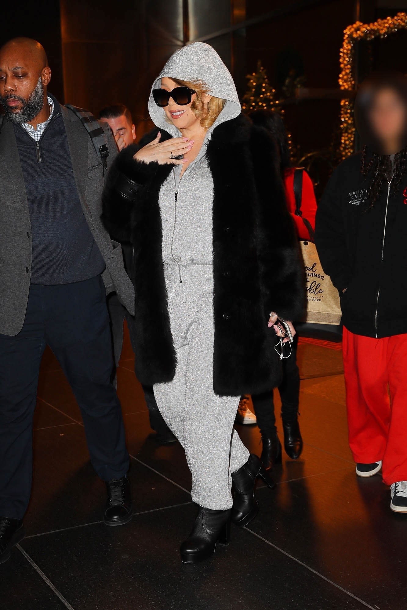 Unfortunately a few days ago she had to cancel because of the flu. But you cannot keep our Christmas angel down for long – because last night she was back in Brooklyn, heroically on stage again to buoy the holiday spirits of those in the audience… including Rihanna.