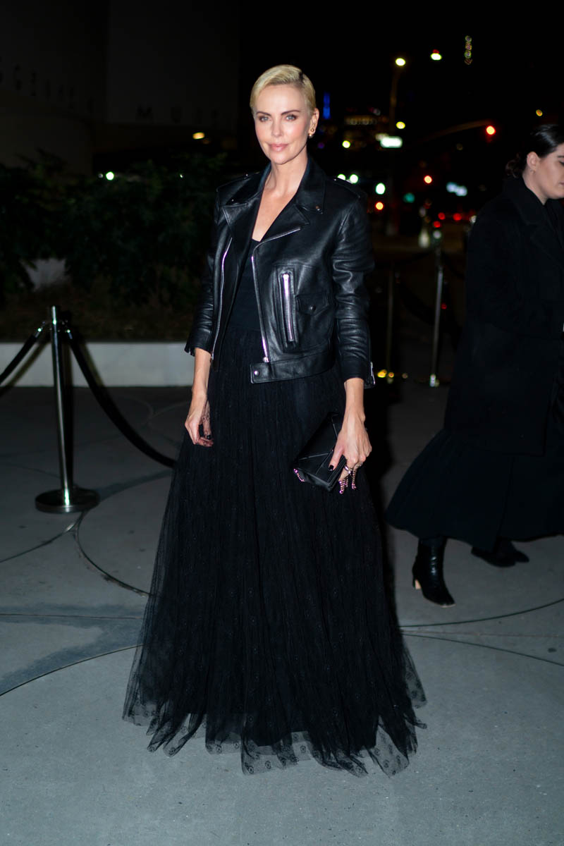 Speaking of campaigning, Charlize Theron was in New York for the 2019 Guggenheim International Gala last night which was clearly sponsored by Dior, of which she is an ambassador. Charlize too, as we’ve seen, has been quite visible as we approach voting deadlines for many of the critics’ boards and industry guilds. She’s wearing a frothy Dior dress and what makes this outfit is the leather moto on top and the reason I’m singling this out is because, yes, even when the event calls for uber-formal, a leather jacket on top of a ball gown is a good idea.