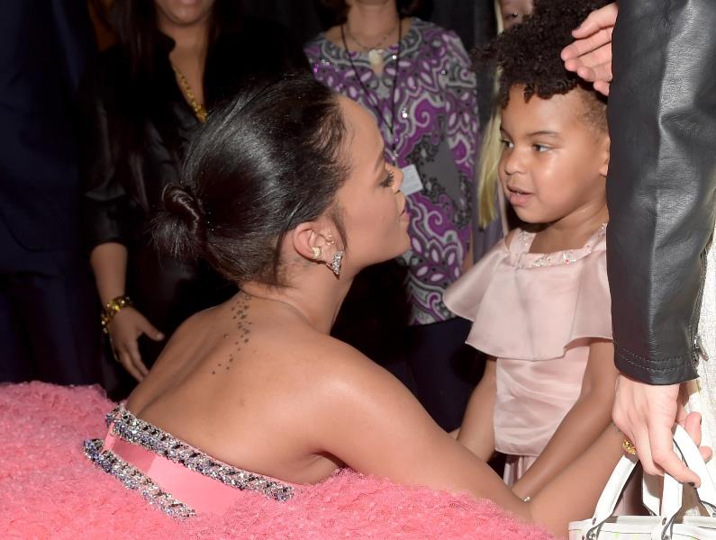 When she was sitting in the audience, front row, with all of that material billowing around her, it looked like it was having its own babies. By the way, one of my favourite pictures from the night. Rihanna and the Blue Ivy Carter: