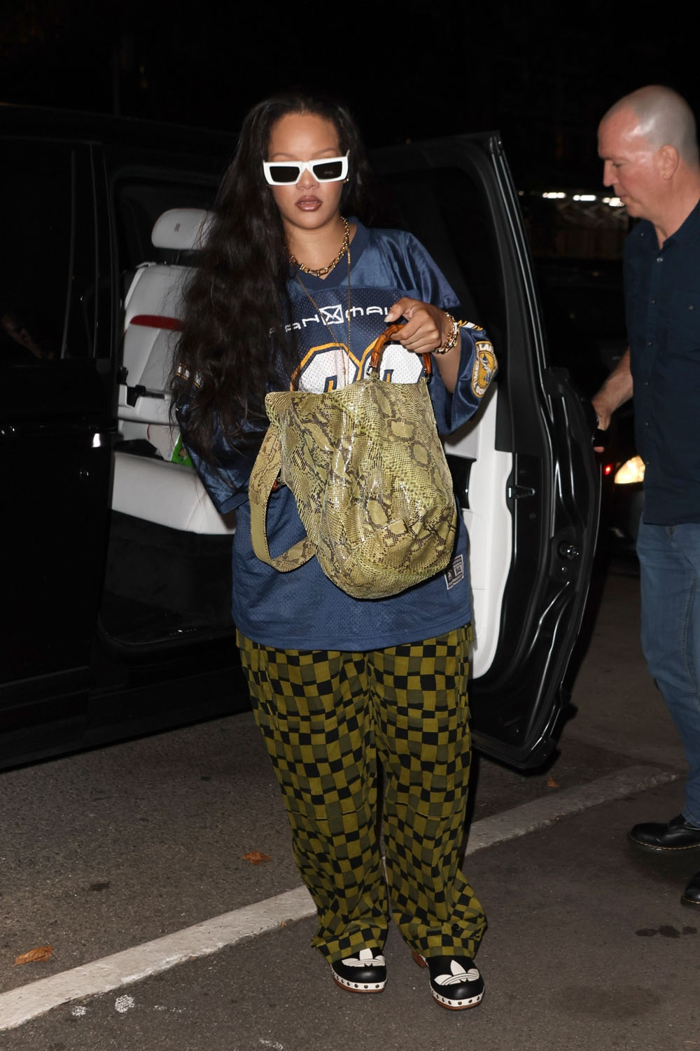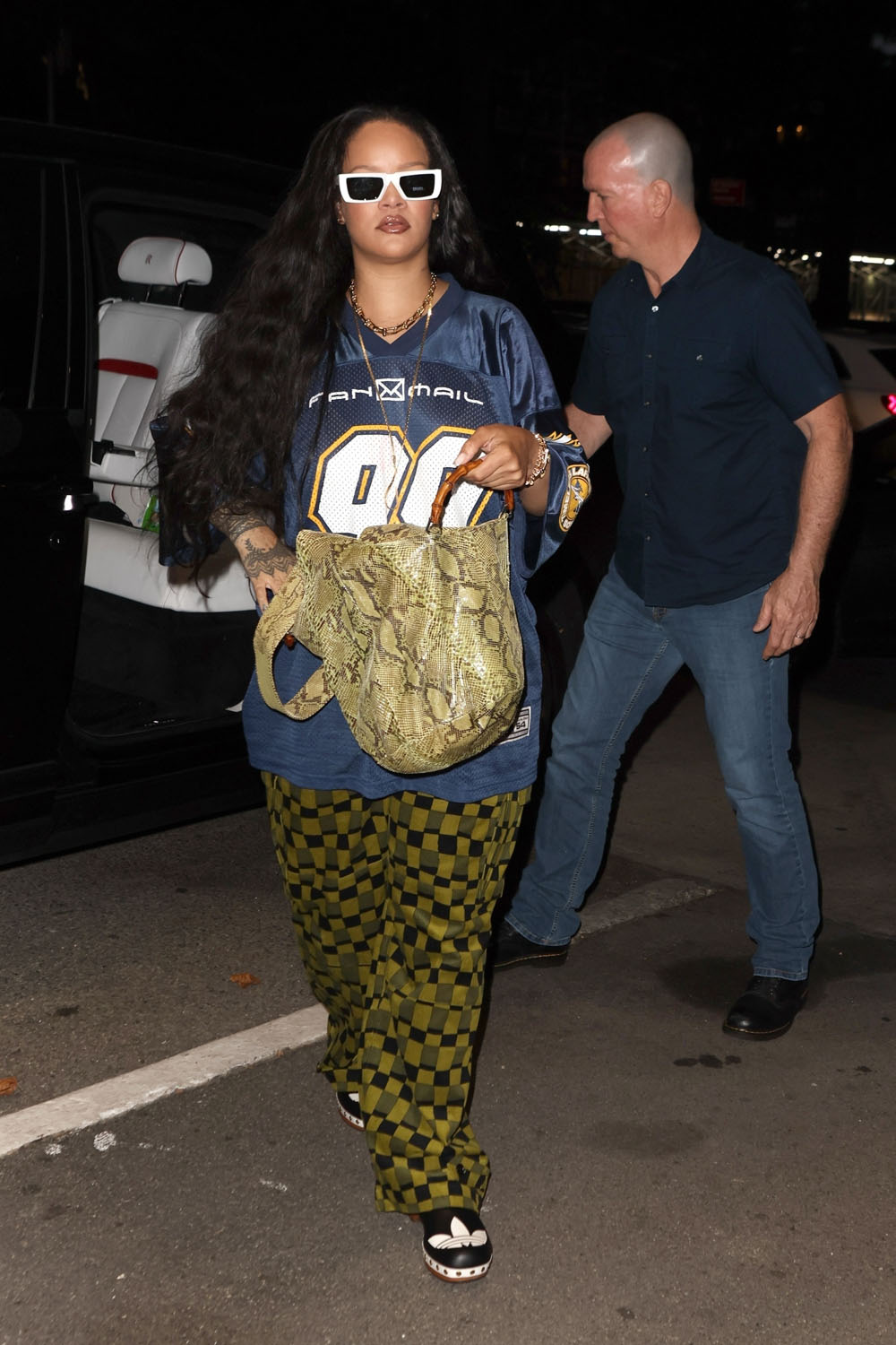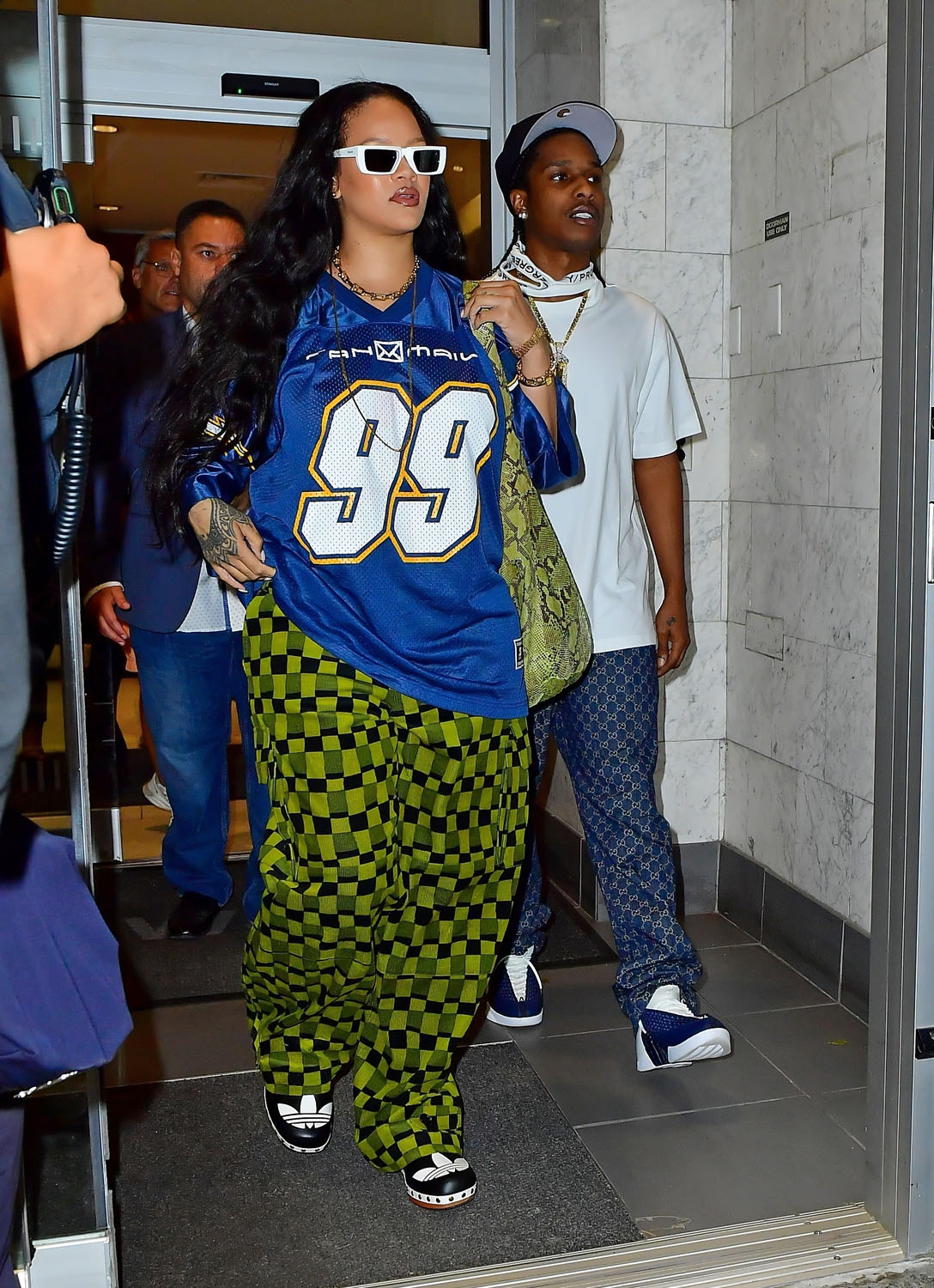 Here’s Rihanna in New York leaving a meeting with A$AP Rocky last night.
