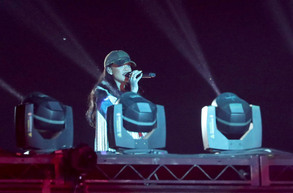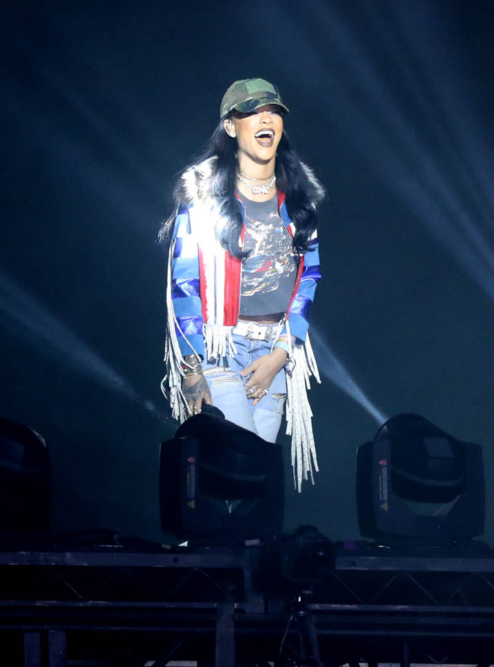 Rihanna had the weekend off from touring so she decided to drop in on Coachella for Calvin Harris’s set. Tonight she’s back on the road in Winnipeg. I saw her last week on Thursday in Toronto. Have we talked about this yet? There are some people who’ve been underwhelmed with ANTI. There is literally no stage design, it’s basically some white sheets and a foam party later on. Really stripped down. The screens don’t even come on until the third or fourth song. I found this kinda refreshing, the no frills aspect of the show. Because everyone has pyro and 18 short film interludes these days. And I expect that, definitely, from, say, Beyoncé. But, as we’ve discussed, Rihanna’s is an entirely different brand. She is not hyper-controlled and choreographed. There’s barely any choreography. On some of the up-tempo songs, she doesn’t even bother singing. So if you’re just there for the bangers like Cheers Drink To That or Disturbia or Don’t Stop The Music, yeah, it might not be your thing. If, however, you know the album, know it front and back, know the vibe of ANTI, you’re good. You’ll be singing along to Sex With Me and Love On The Brain and Desperado and you’ll be fist-pumping all “f-ck your pride!” at the end. I was in a good mood for days.