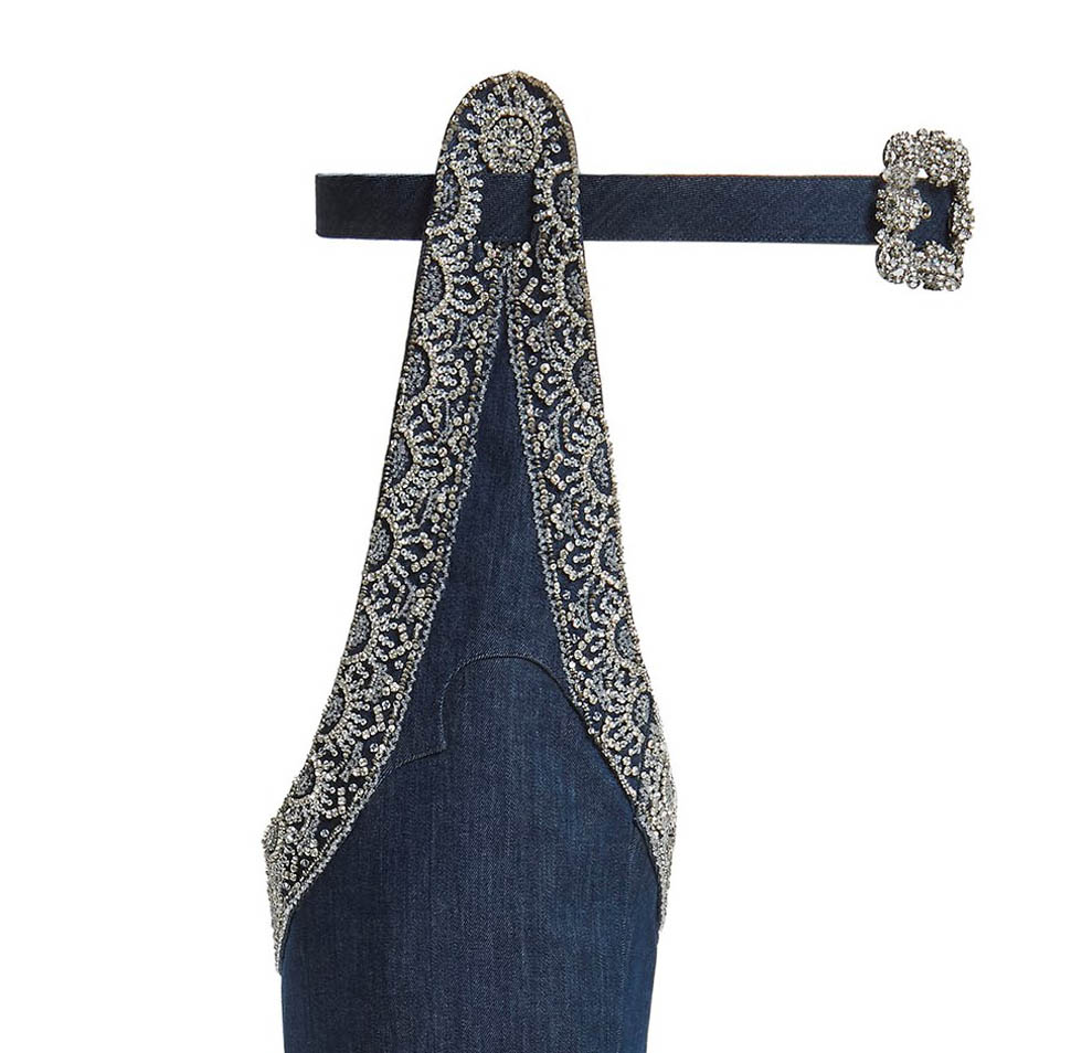 As mentioned in today’s open – click here for a refresher – Rihanna has collaborated with Manolo Blahnik on a shoe collection. According to British VOGUE there are 6 designs in total. Here’s a look at 4 of those pieces. It’s a denim thing. I wouldn’t wear any of them. Jean shoes are just not my thing. That said, they’re her thing and I could totally see her making those booties work. The sequined pair and the wedding shoe however….