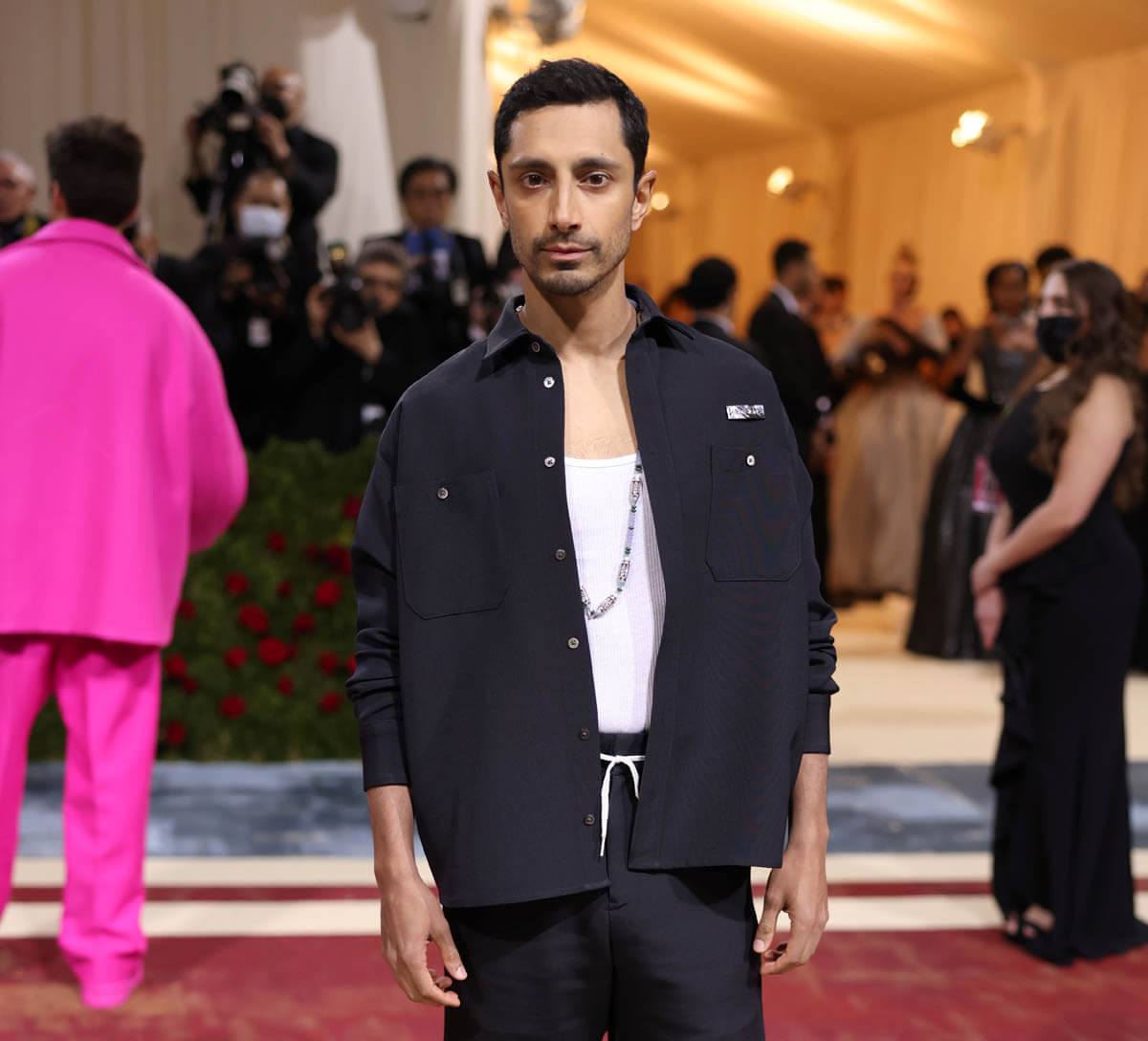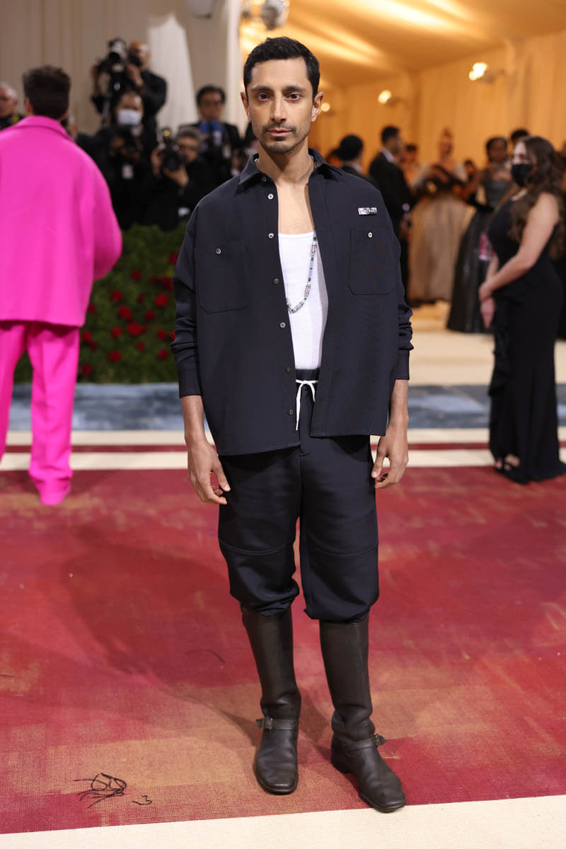 So if we’re talking about the theme of the Met Gala and how it was interpreted, one of the people who best “understood the assignment”, as they say in the culture, would be Riz Ahmed whose outfit was “an homage to the immigrant workers who kept the Gilded Age going”: a work jacket over a white tank, utility pants, and boots.