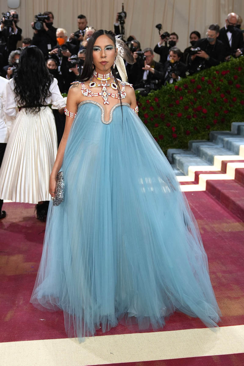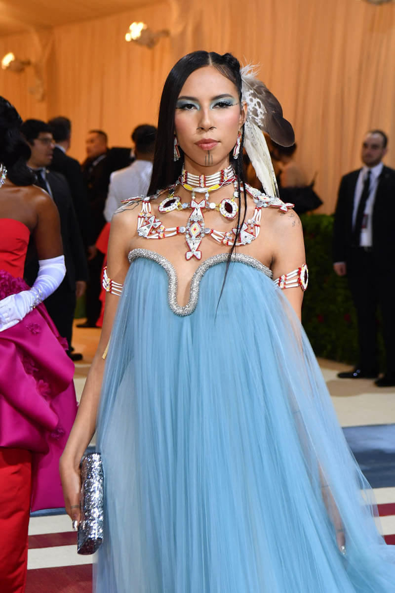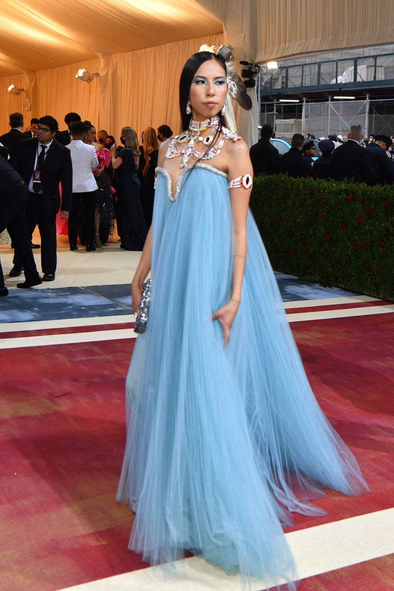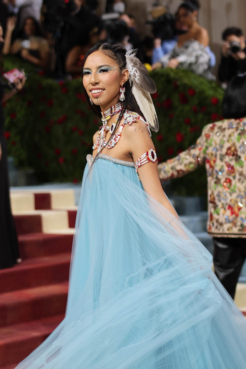 Same goes for Quannah Chasinghorse and “gilded” for her means something entirely different. She arrived at the Met Gala gilded in the symbols that represent her people and her community.