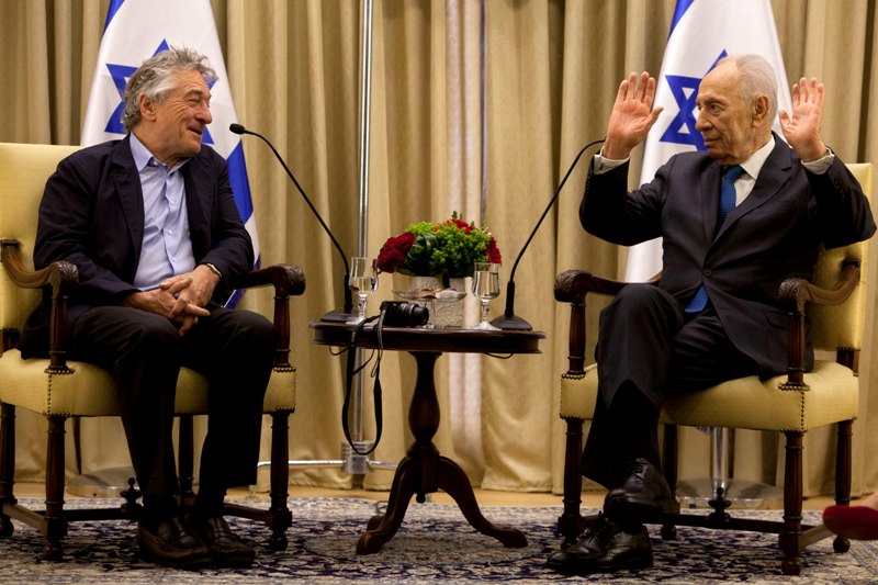 In other De Niro news, while the internet continues is laughing at John Travolta’s beard and accent, De Niro was in Jerusalem today meeting with President Shimon Peres. De Niro is there to attend Peres’s 90th birthday party.