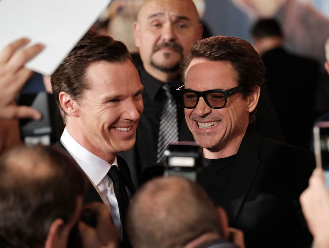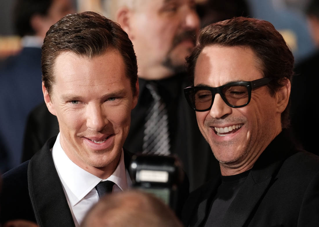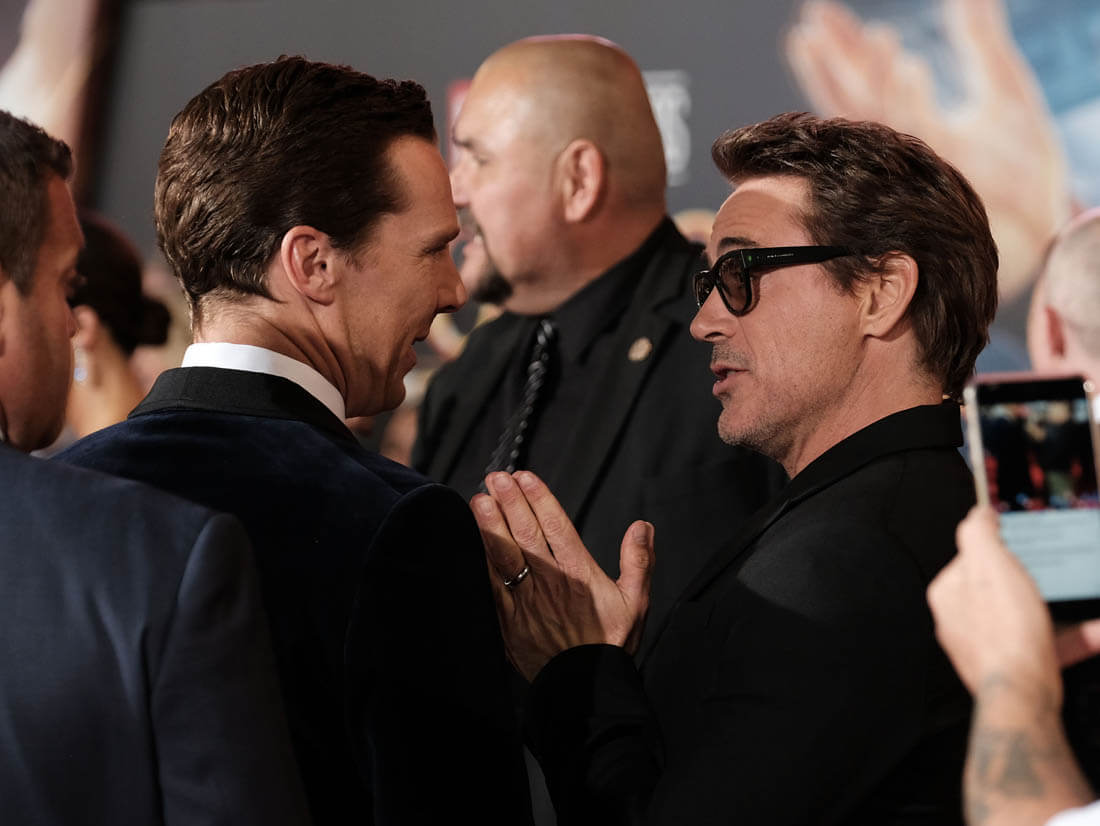 What do you think the dynamics are here? He is the leader, both fictionally and in real life. Iron Man was first. And the success of Iron Man was critical to the success of the others who followed. To have his presence, to have him by his side, for Benedict Cumberbatch, is that like a blessing? Is it like the Godfather coming to your wedding? If so, how do you show the gratitude?