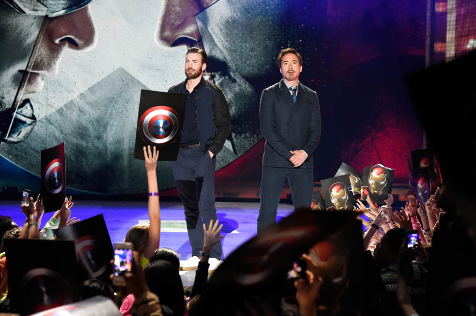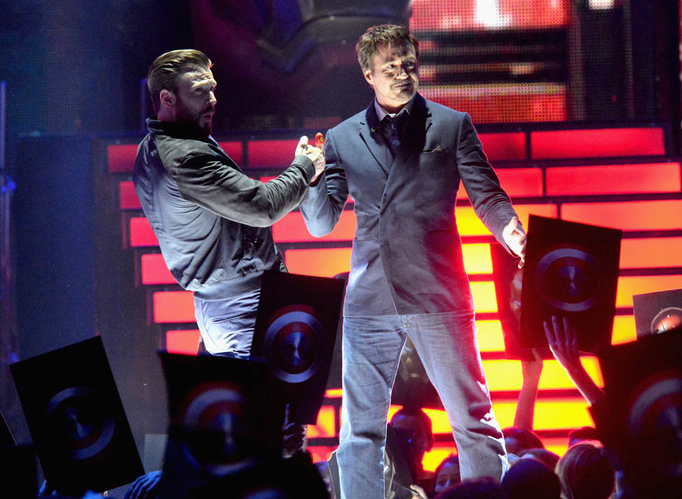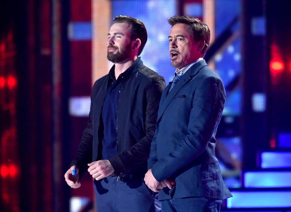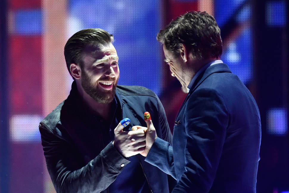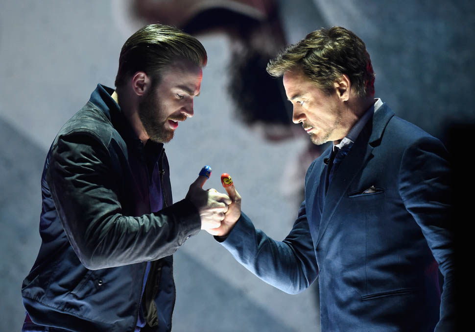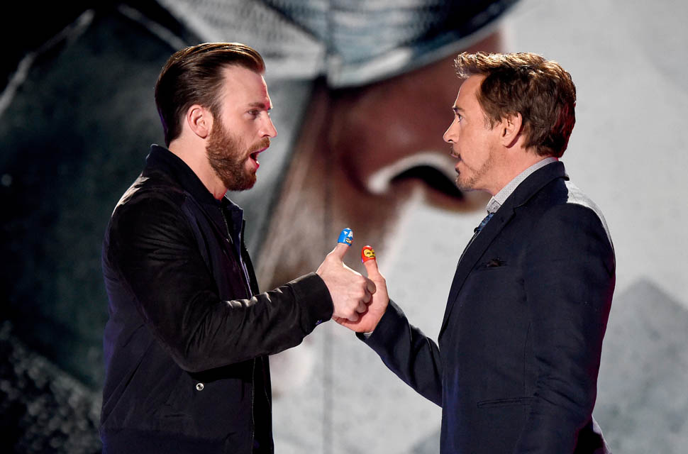 This is really smart the way they’re marketing this movie. And it didn’t happen immediately. They’ve been putting this in play over the course of, what, 7 or 8 installments? So that it’s not just for comic book nerds. It’s for those of us who’ve consumed this as a major part of the pop culture landscape over the last few years - with a theme that’s universally relatable. You’re either Gryffindor or Slytherin. Aniston or Jolie. Cap or Iron Man. The Avengers are divided. And they’re encouraging the fandom to divide along those lines too. They encouraged it, playfully, at the Kids’ Choice Awards the other night. With a thumb fight.